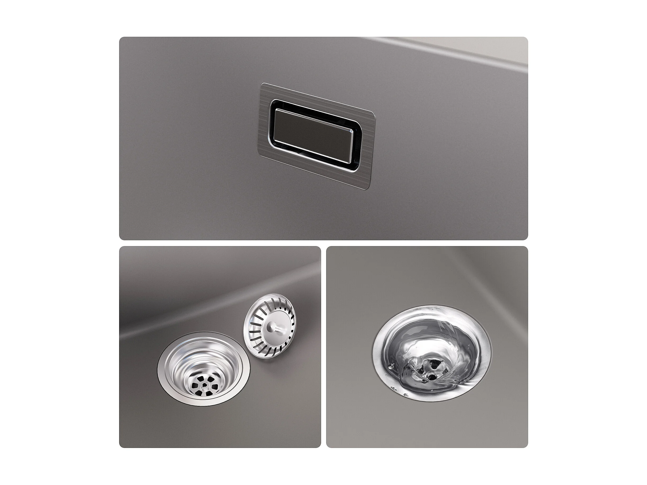1 Granieten aanrechtbak, 55*45*20cm, afvoerset, grijs + 360° draaibare keukenkraan Uittrekbare douche