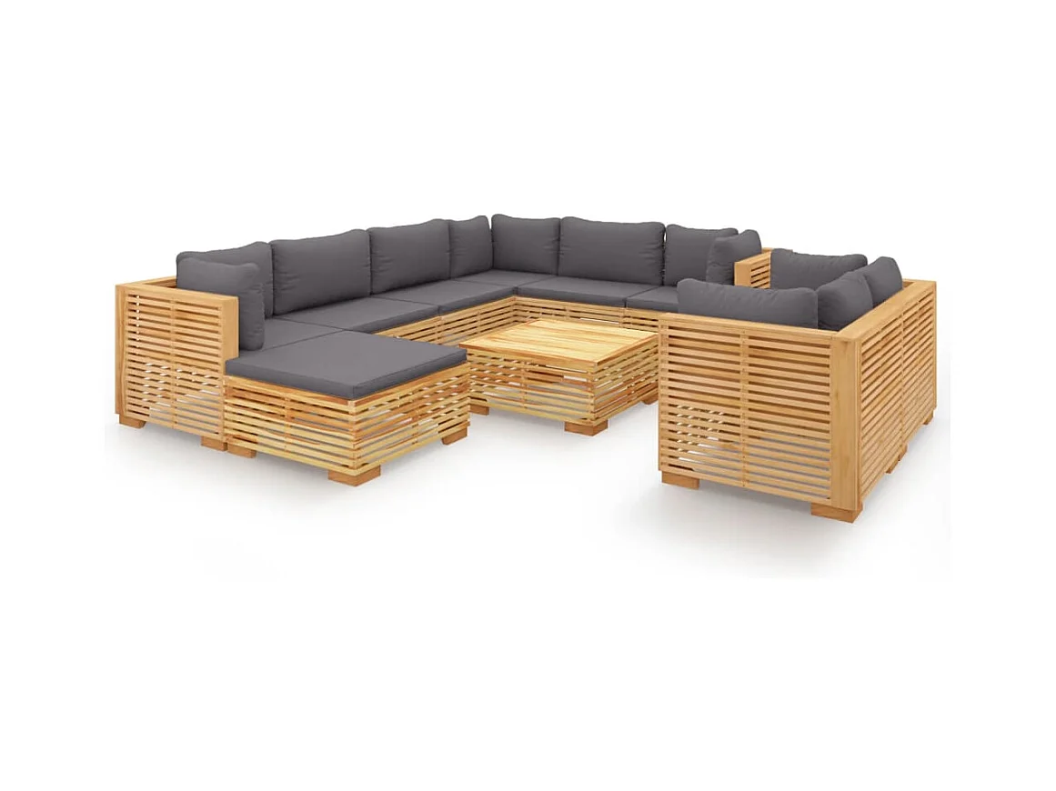 10-delige Loungeset met kussens massief teakhout