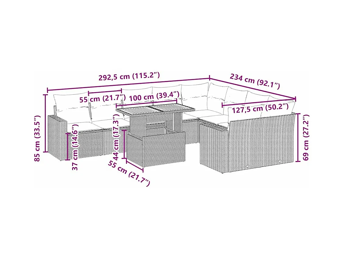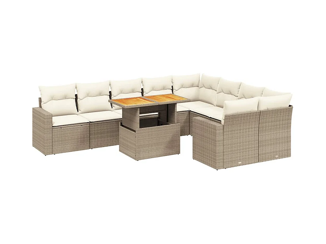 5-delige Loungeset met kussens poly rattan en acaciahout beige