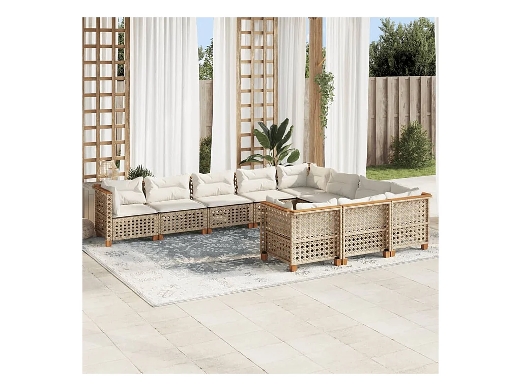 10-delige Loungeset met kussens poly rattan beige