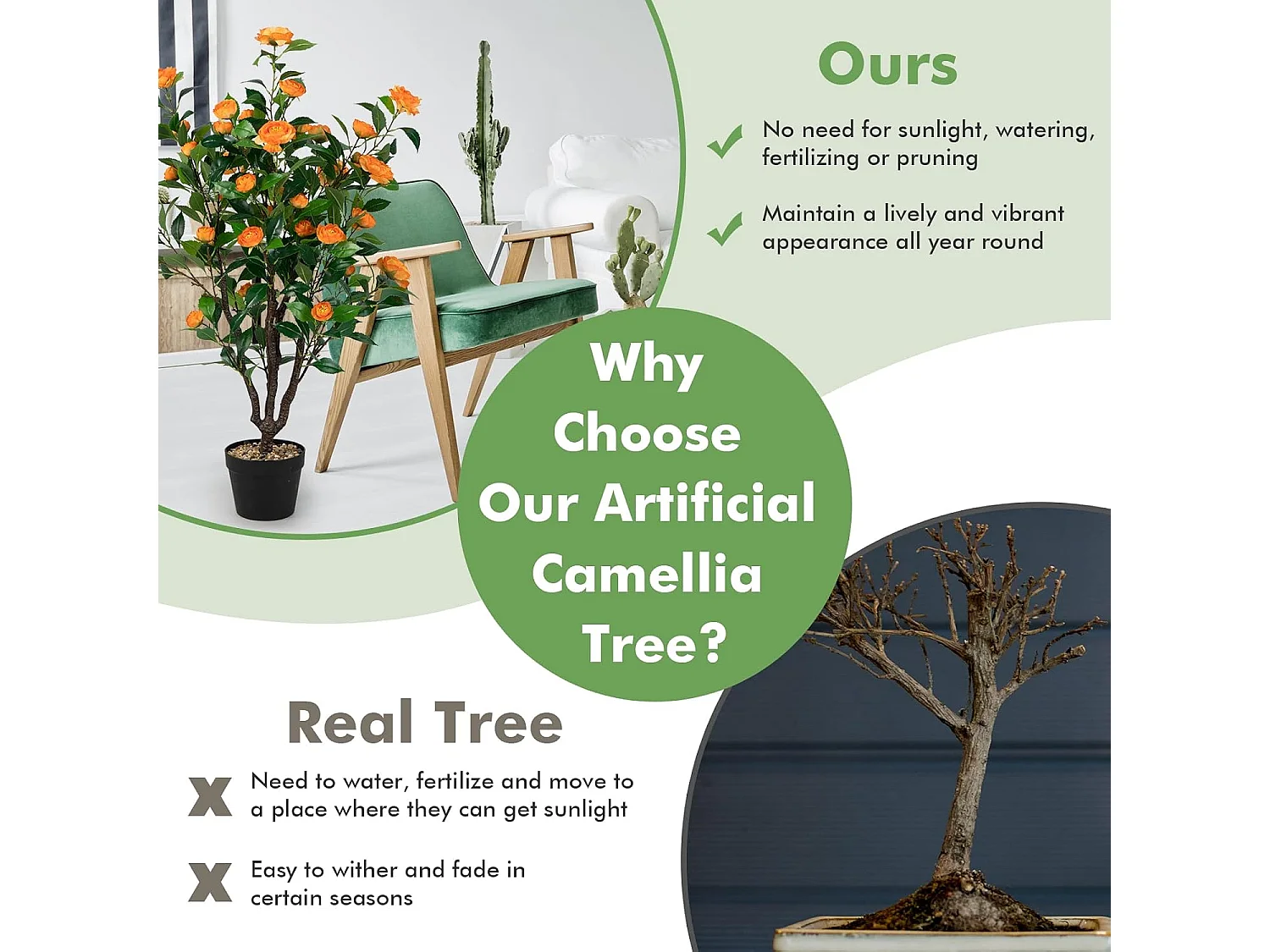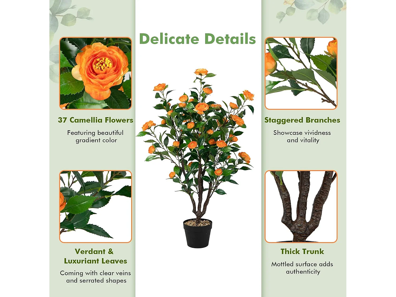 100 cm kunstboom met bloemen, kunstmatige cameliaboom, kunstplant in pot, cameliaplant met 37 bloemen en natuurlijke stam, kunstbloem voor thuis,decoratieve plant