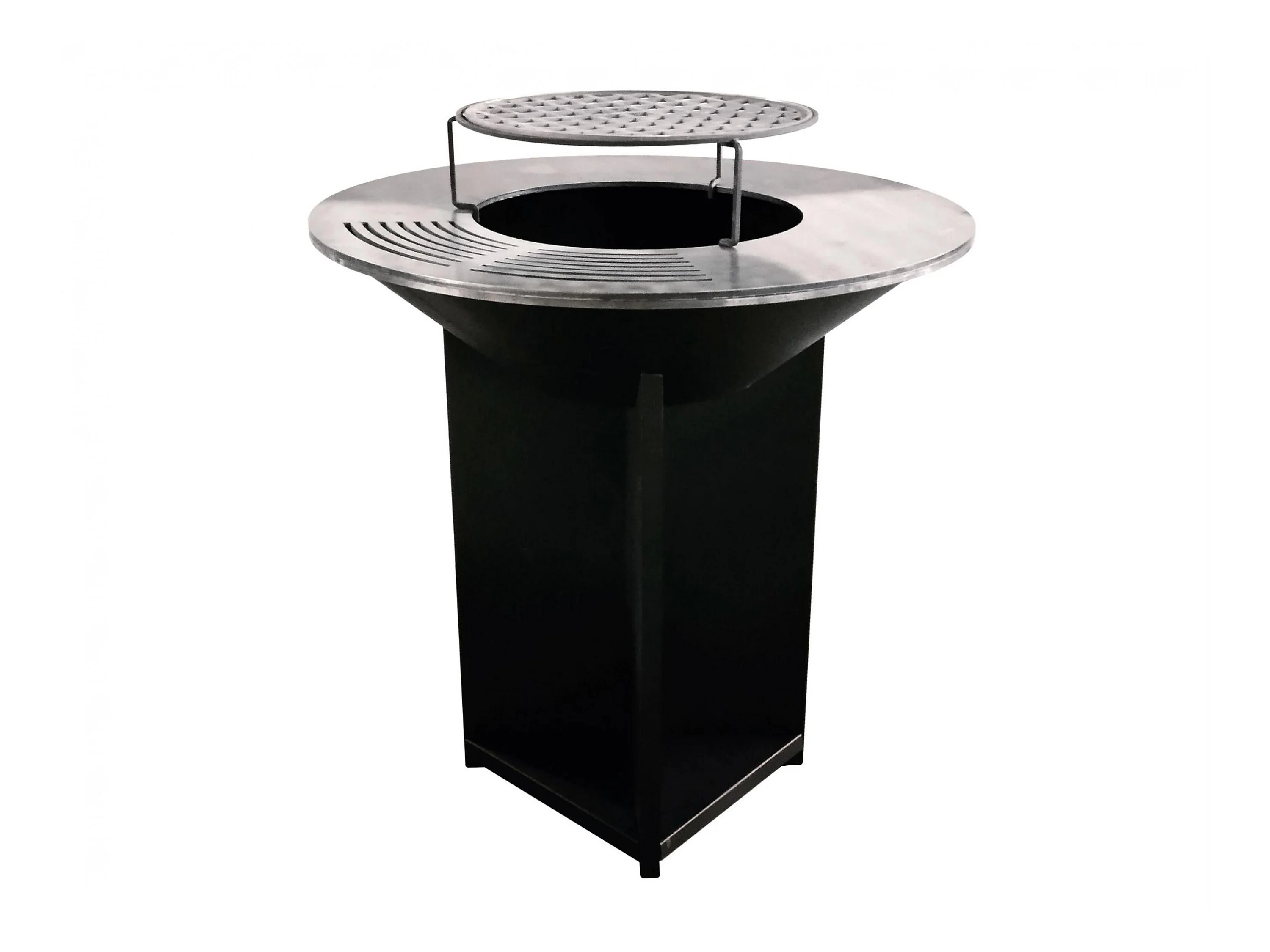 Barbecue met ronde bakplaat met grill en stalen onderstel