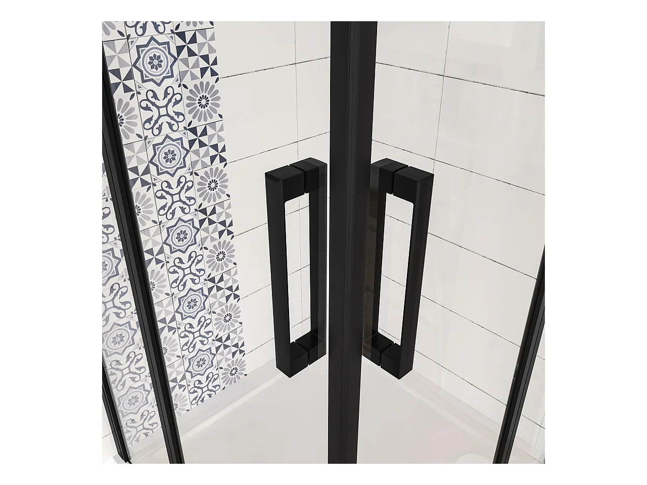 100x100x200cm Douchecabine met dubbele draaideur,6mm NANO helder veiligheidsglas,mat zwarte aluminium frame
