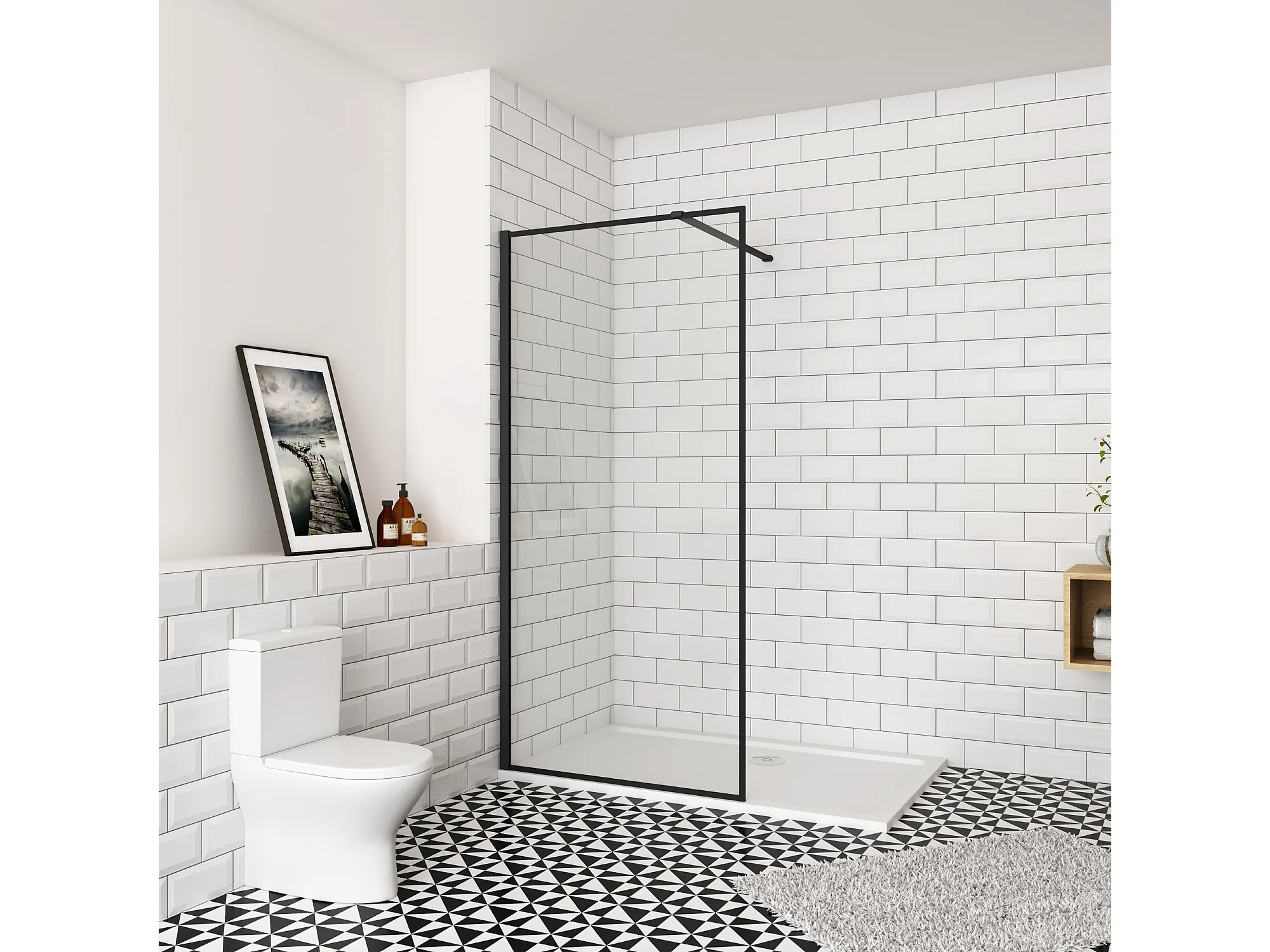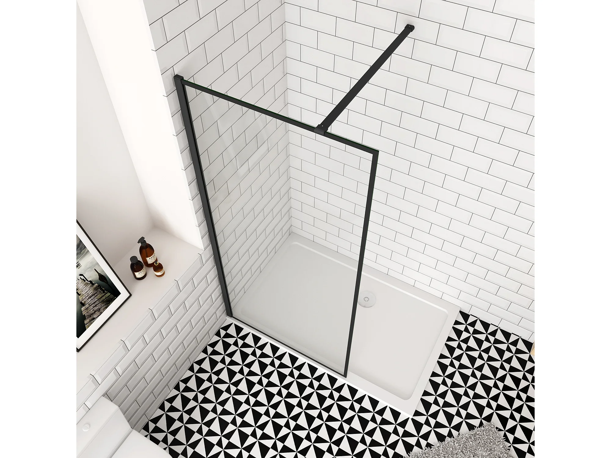 100x200cm inloopdouche-douchecabine,8mm zwart raster gehard gezeefdrukt glas,easyclean,antikalk,stabilisatiestang 90cm (kan worden gesneden),mat zwart profiel