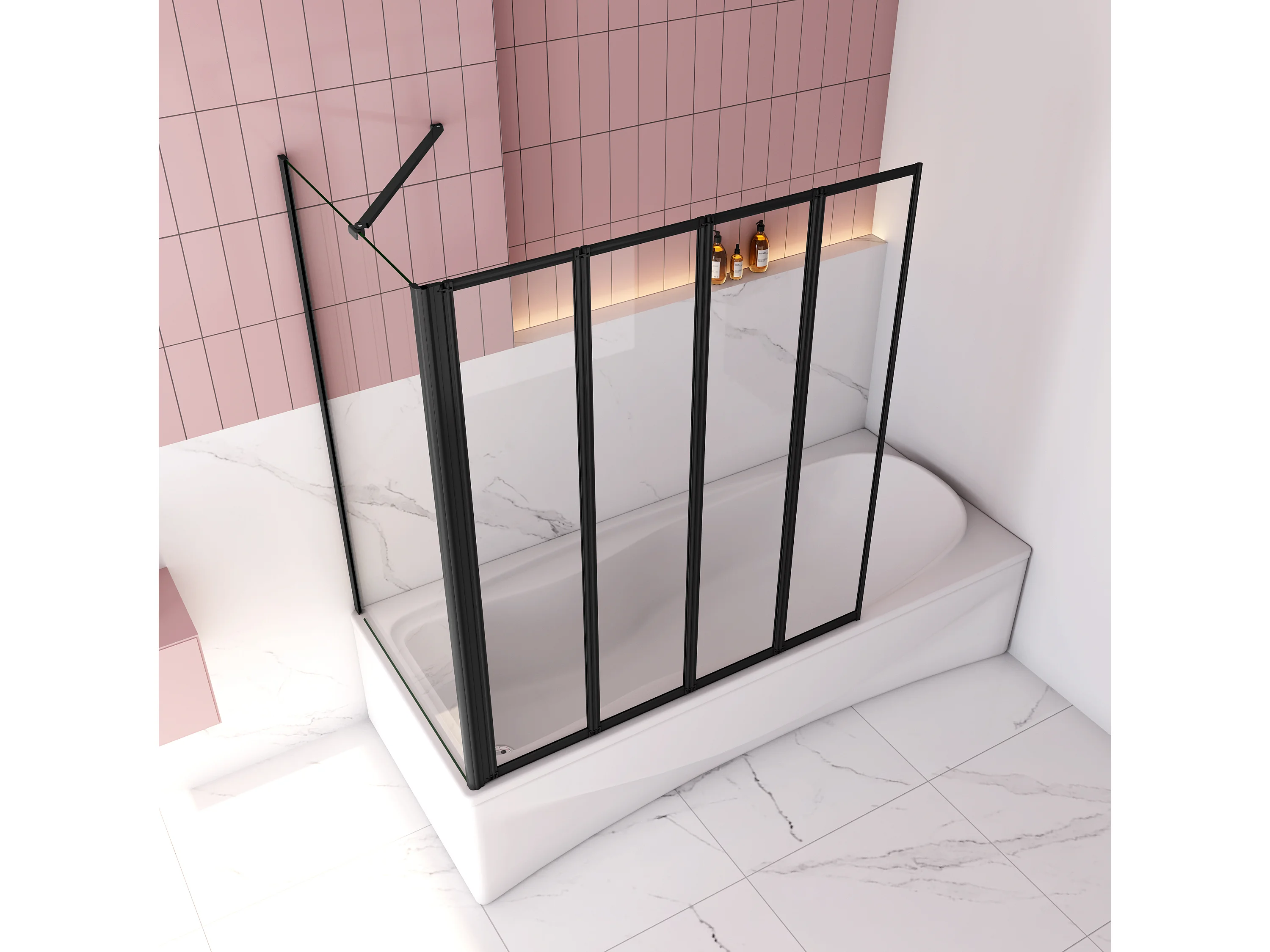 100x140cm Badwand 4-delig vouwbaar,4mm helder ESG-veiligheidsglas - mat zwart profiel