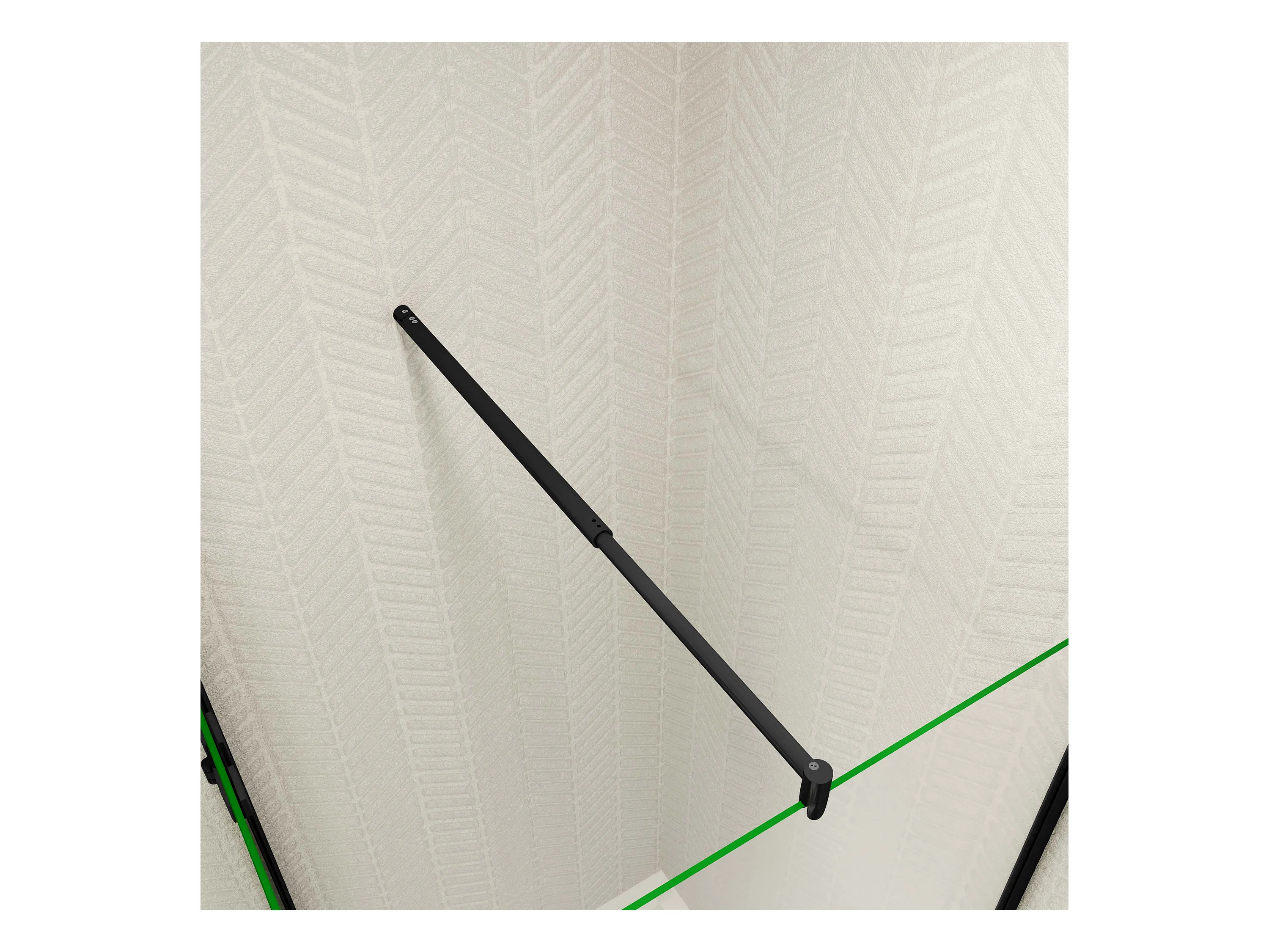 100x90x195cm douchecabine met inklapbare vouwdeur en vaste zijwand, 6mm helder EasyClean veiligheidsglas,mat zwarte aluminium frame, F-vorm 140cm Stabilisatiestang