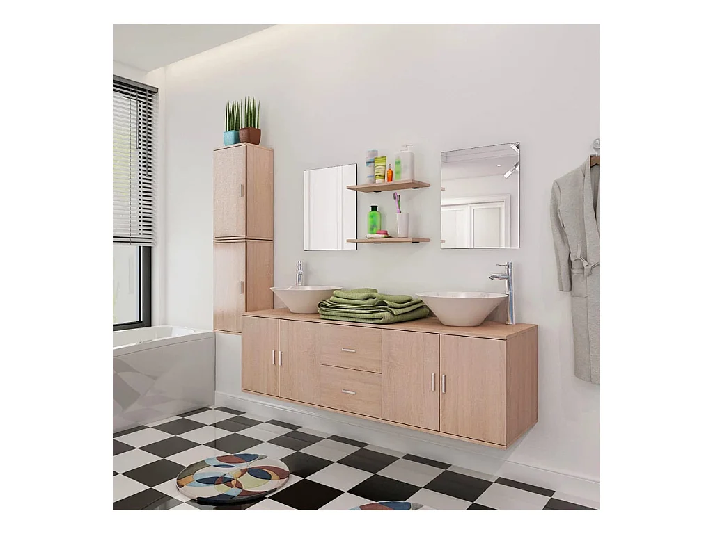 Dubbele wastafelmeubel + wastafel + spiegel + ATOLL-kolom