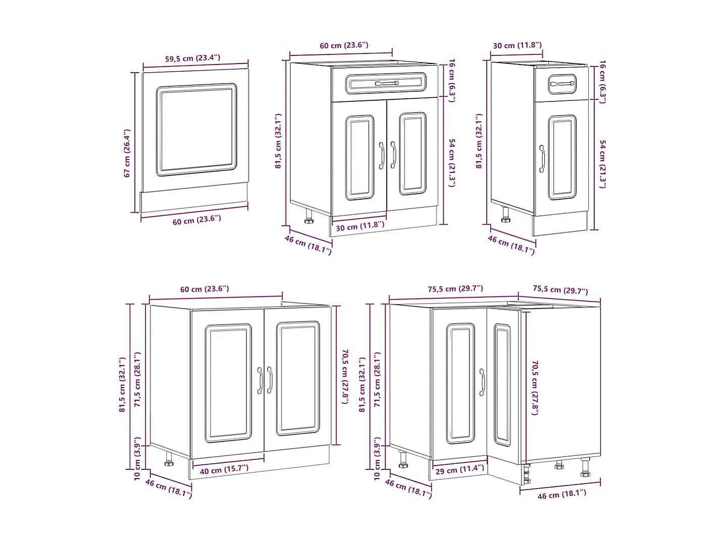 11-delige Keukenkastenset Lucca bewerkt hout gerookt eiken