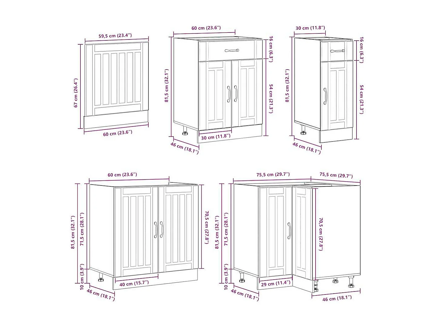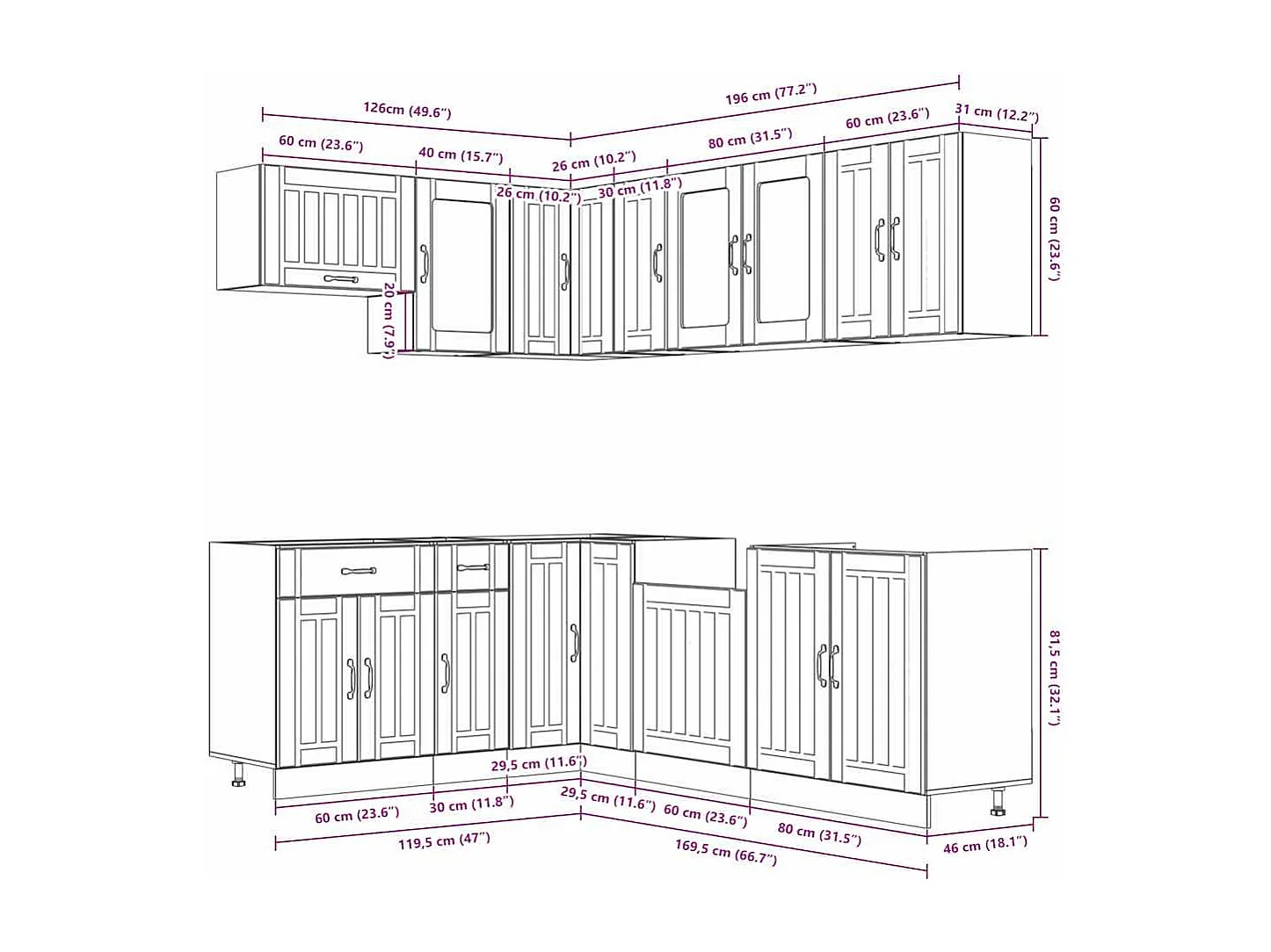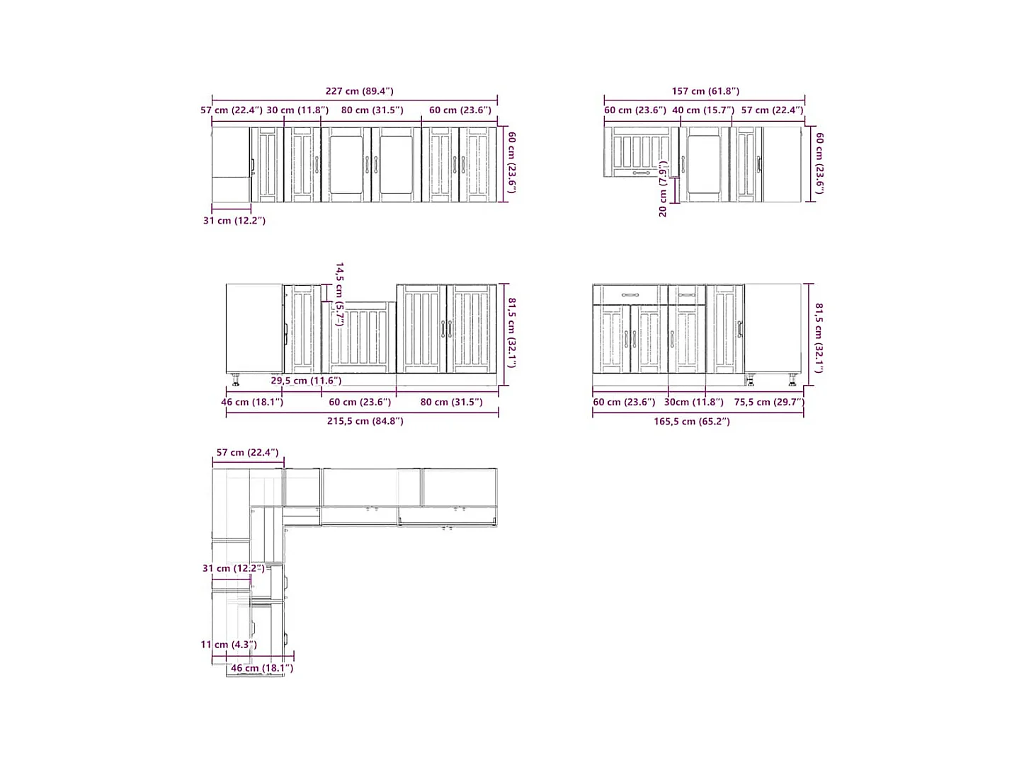 11-delige Keukenkastenset Lucca bewerkt hout gerookt eiken