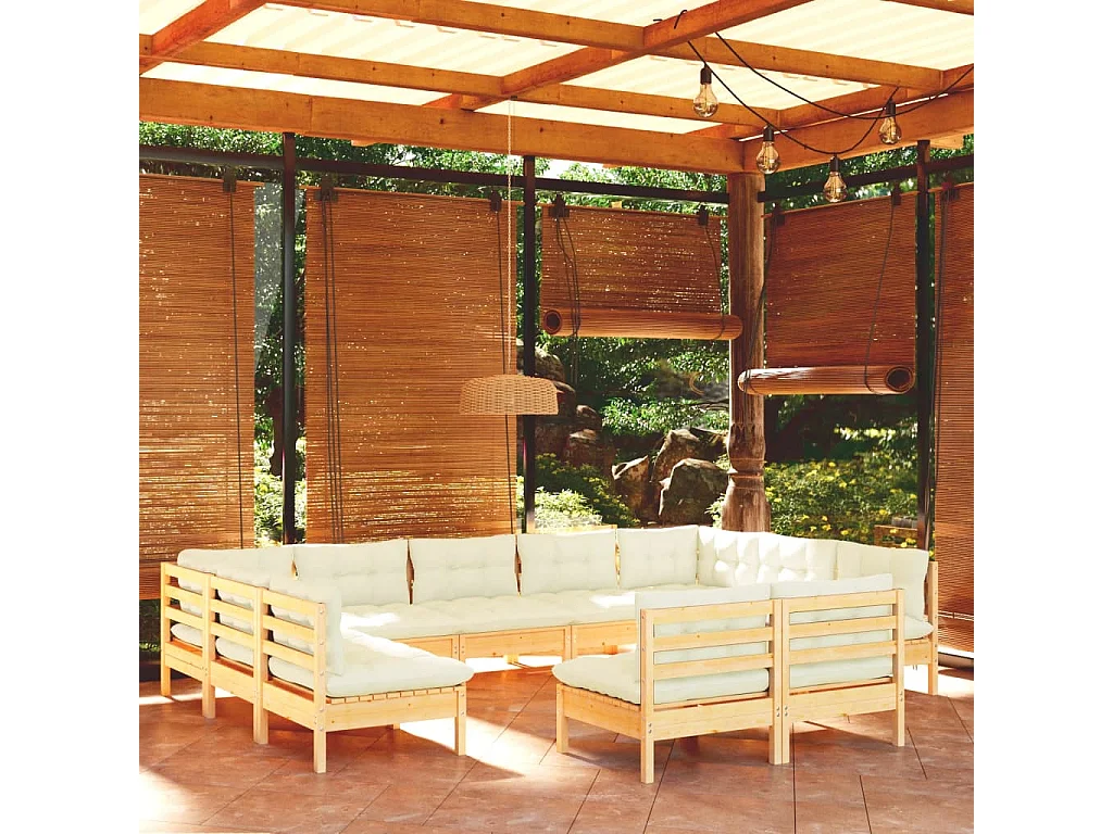 11-delige Loungeset met crèmekleurige kussens grenenhout
