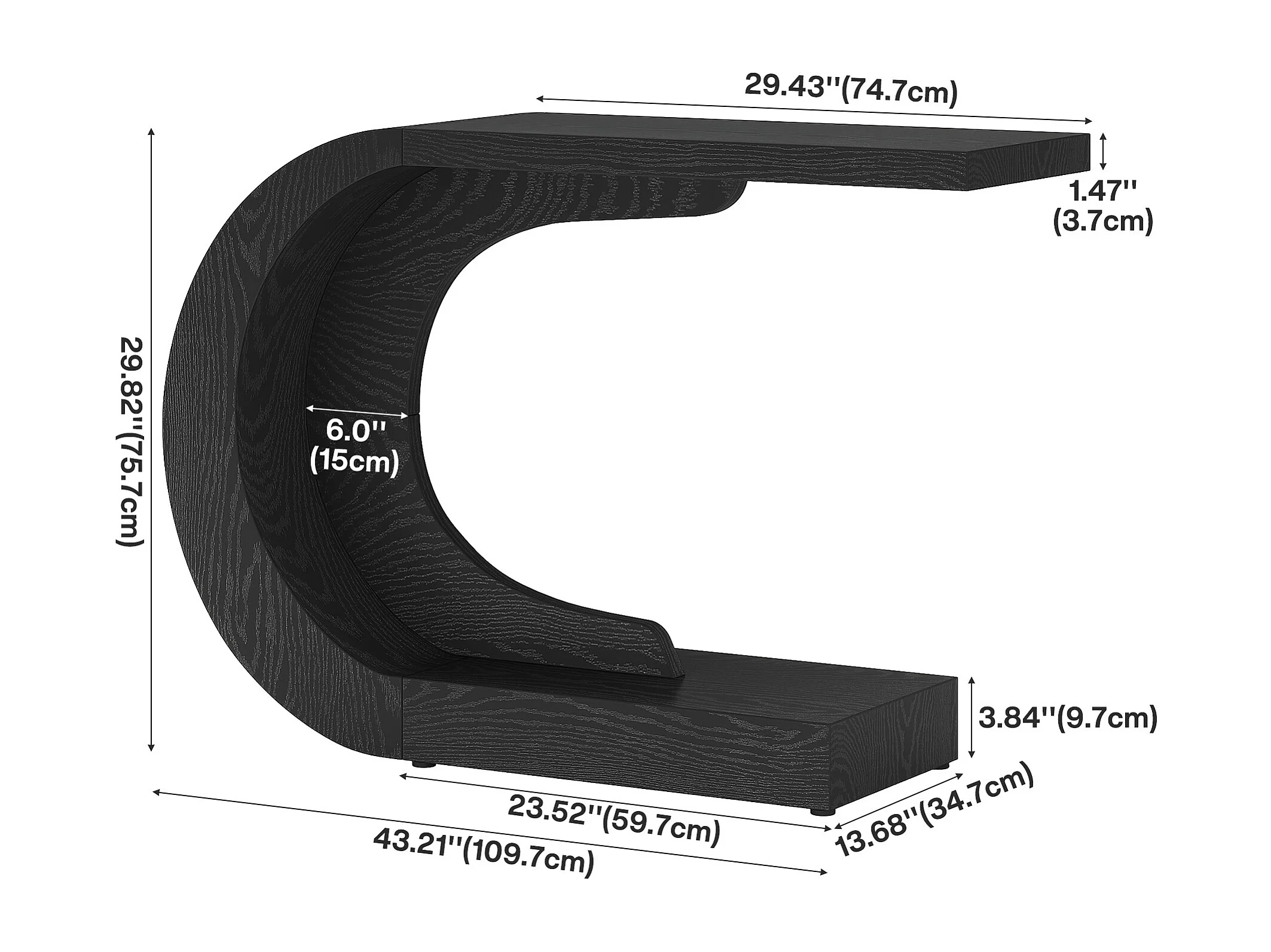 110cm console-entreetafel met opbergruimte, unieke C-vormige zwarte achterbanktafel