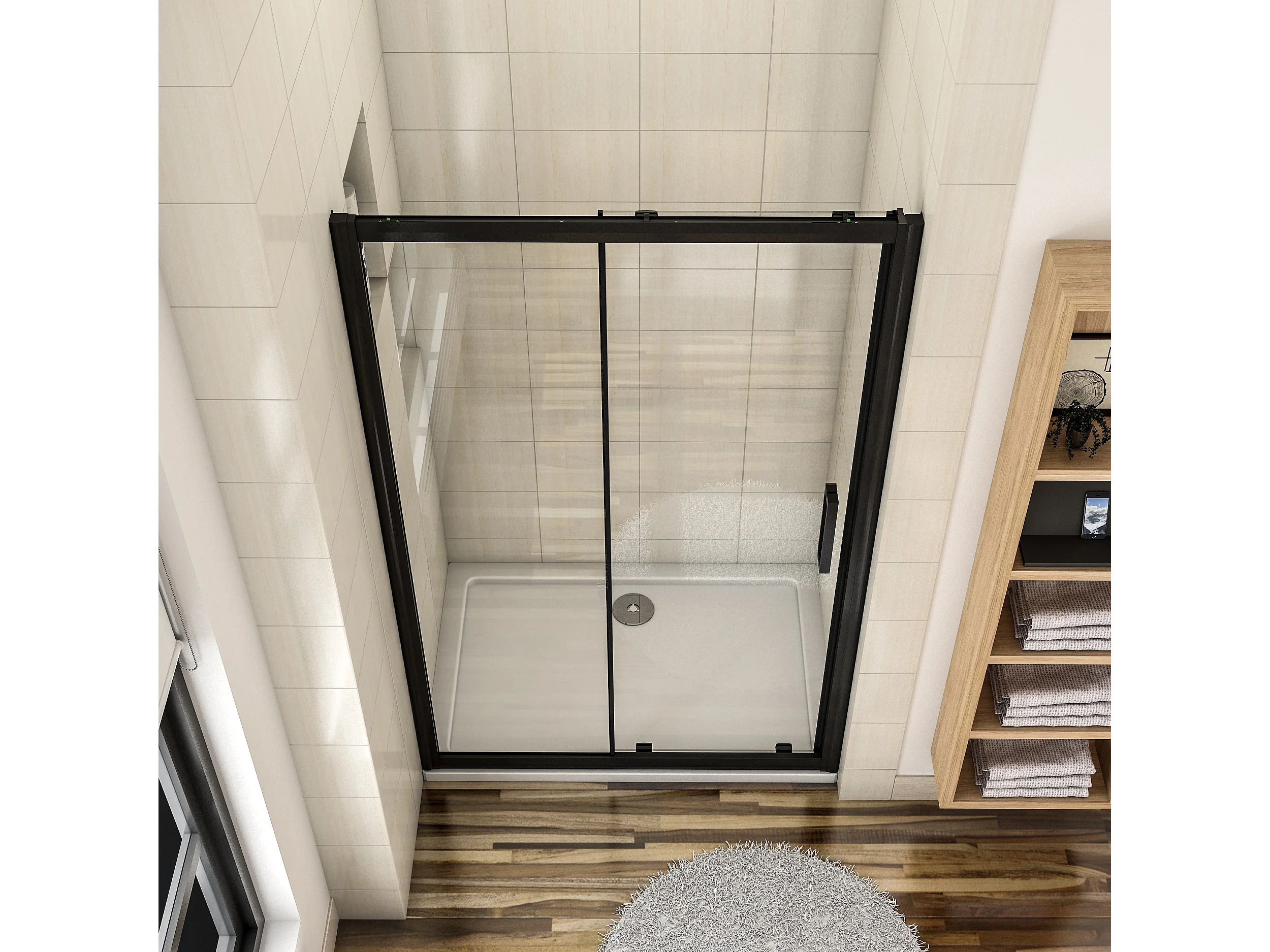 110x195 cm douchescherm,schuifdeur,douchedeur,8 mm NANO GLAS zwart,Met bufferstrook