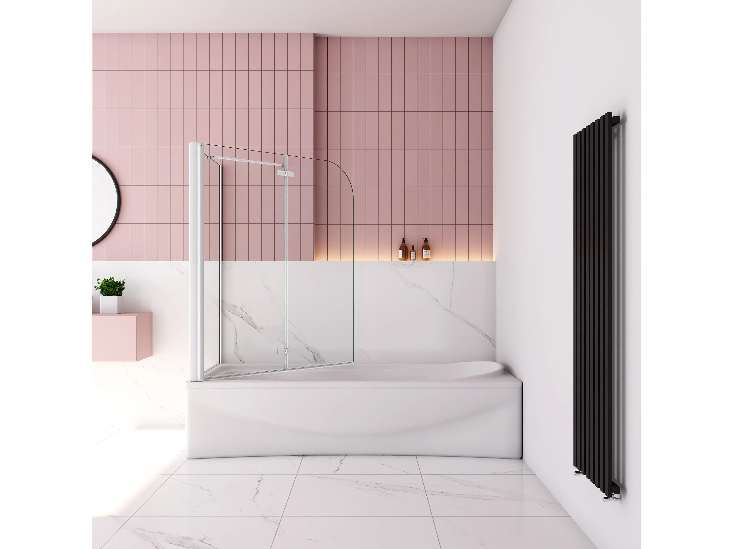 110x75x140cm Badscherm badwand 2 panelen vouwbaar met vast zijwand,6mm NANO helder ESG-veiligheidsglas - mat wit profiel