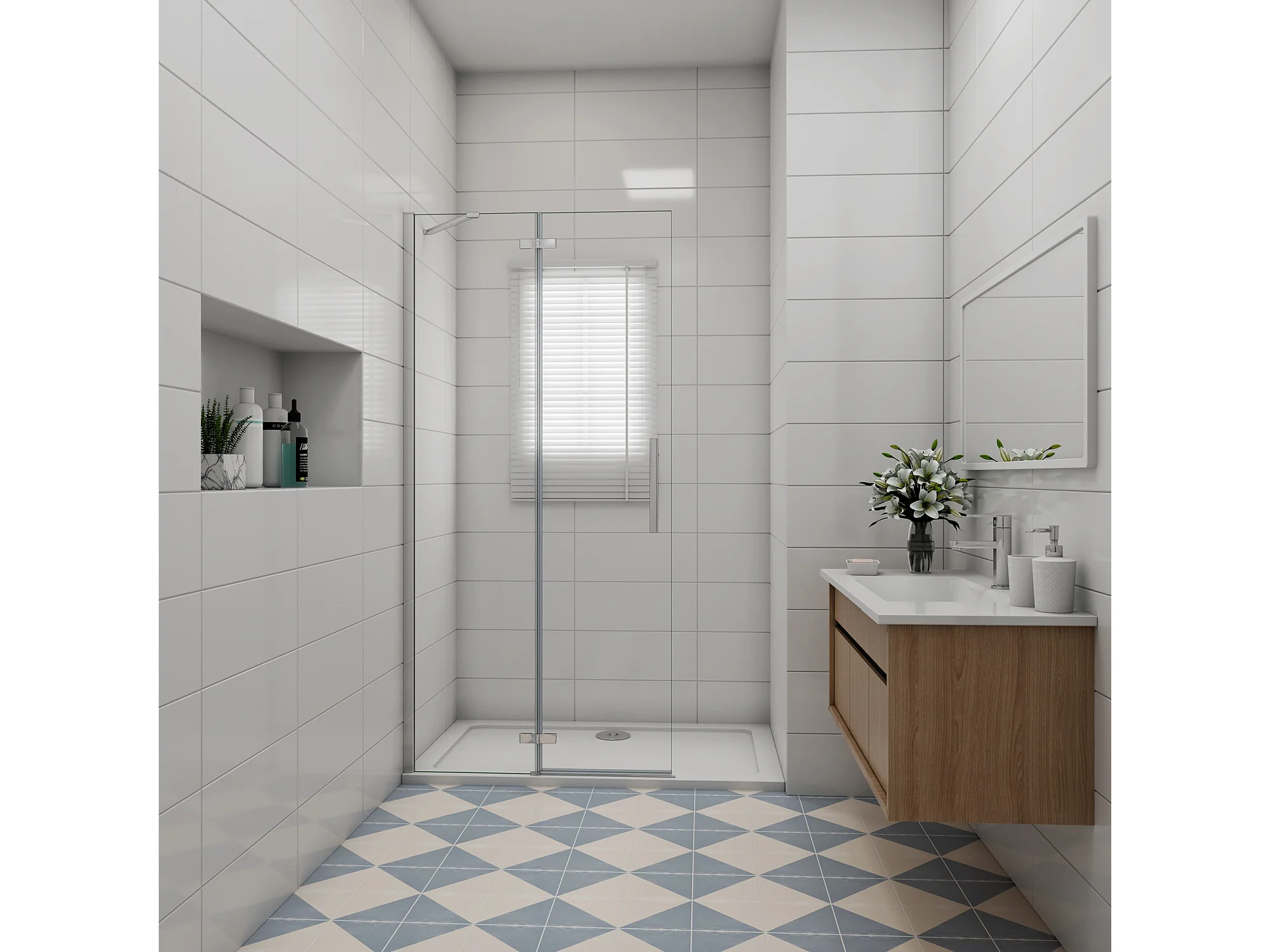 Douchewand-Inloopdouche draaibaar 96x185cm 6mm NANO veiligheidsglas Easyclean glanzend chroom aluminium profiel