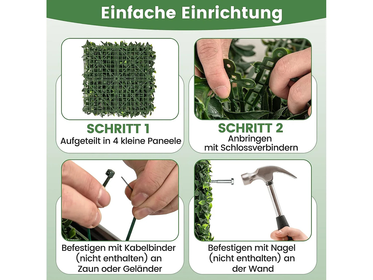 12 stuks kunsthegplantenwand, 50 x 50 cm, panelen met bladeren, gesimuleerd gazon, kunstplant, wandplant voor muur, balkon, tuin, groen