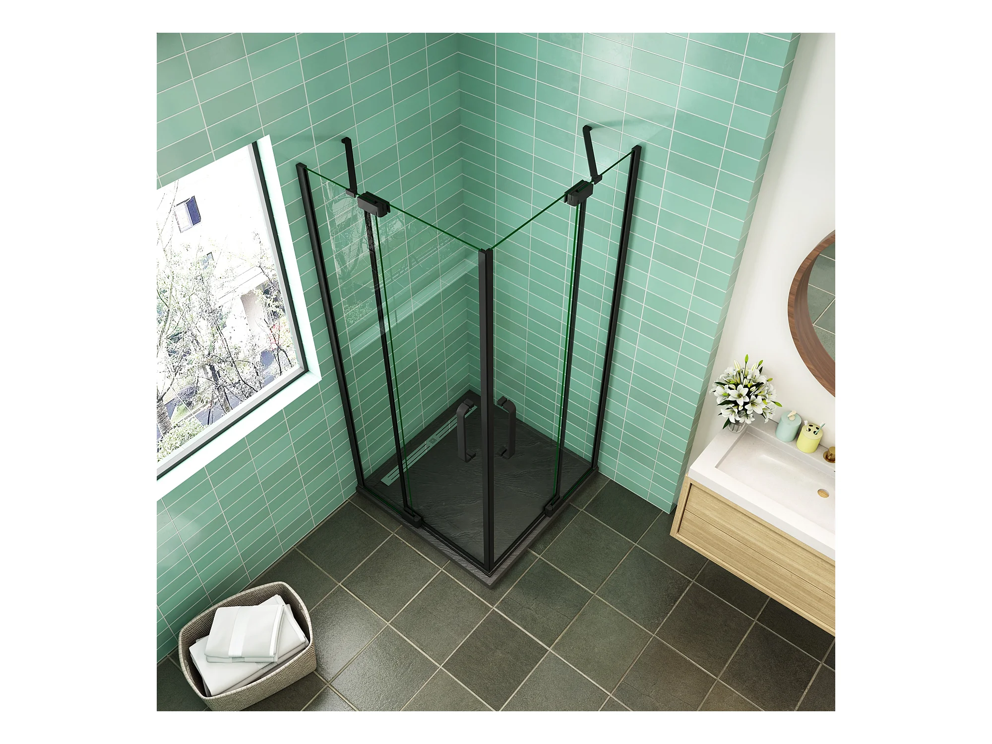 120x120x195cm Douchecabine Hoekinstap Draaideur Antikalk Helder Glas 8mm Veiligheidsglas Mat Zwart Profiel