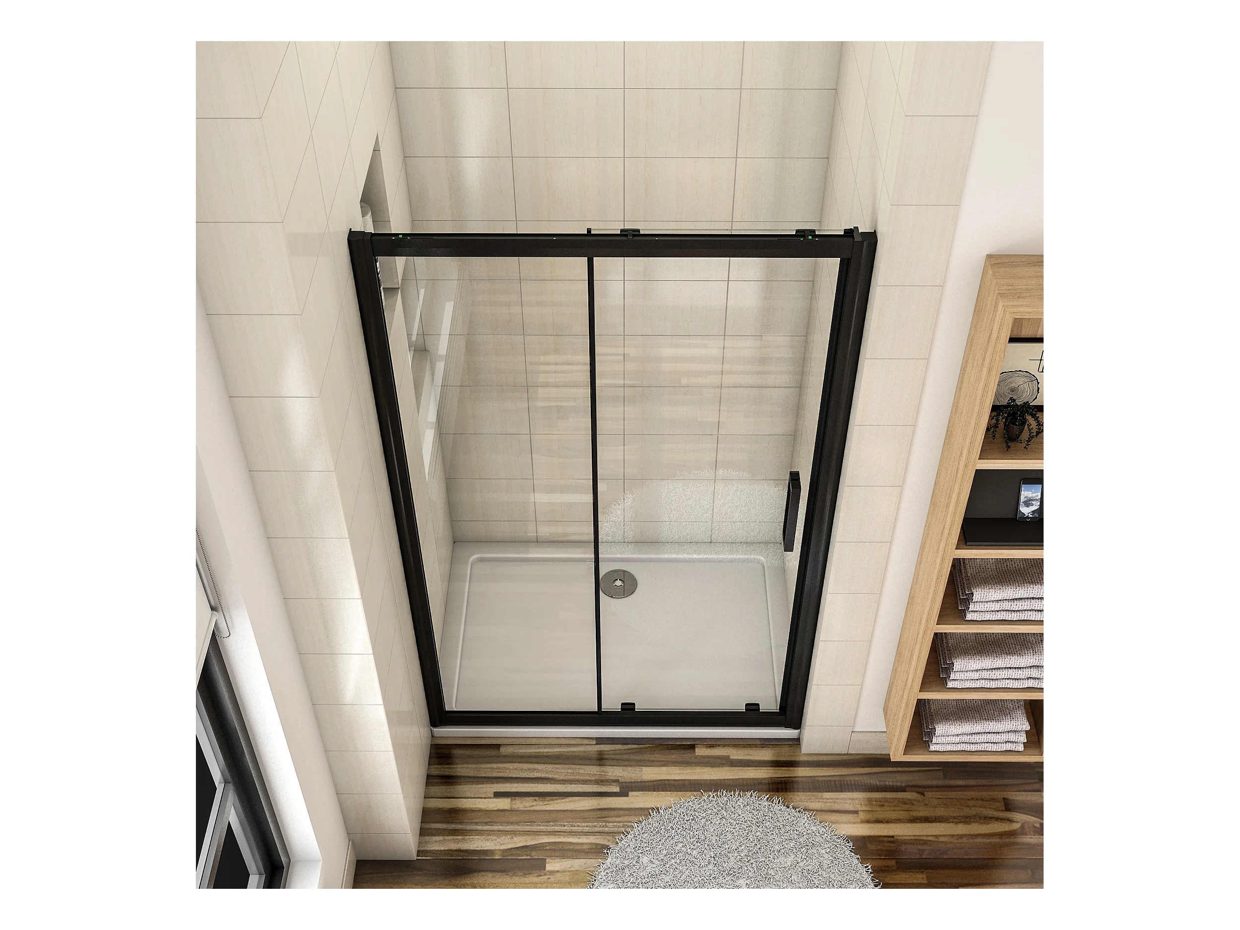 120x195 cm douchescherm,schuifdeur,douchedeur,8 mm NANO GLAS zwart,Met bufferstrook