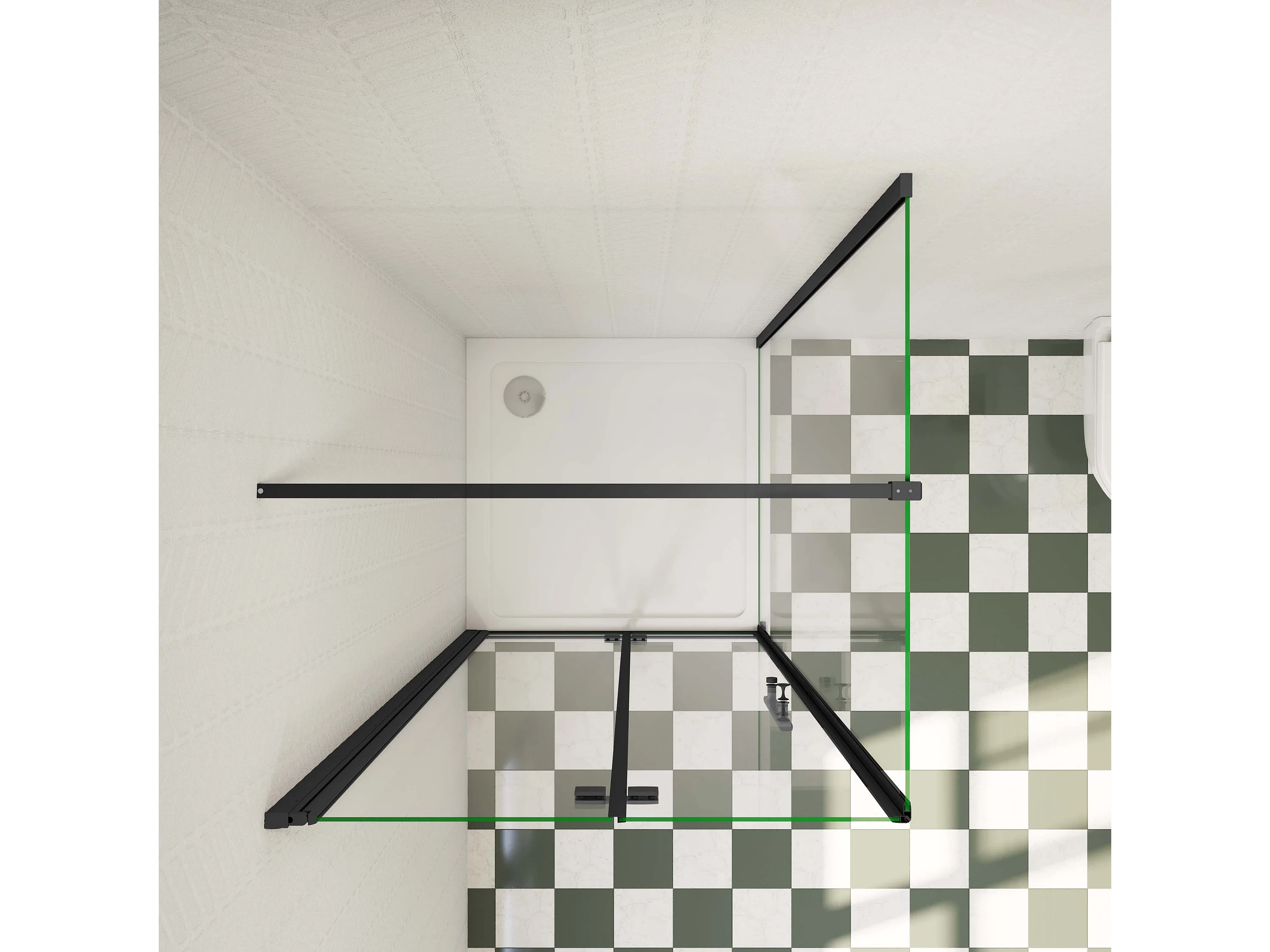 120x70x185 cm douchecabine met inklapbare vouwdeur en vaste zijwand, 6mm helder EasyClean veiligheidsglas,mat zwarte aluminium frame, F-vorm 140cm Stabilisatiestang