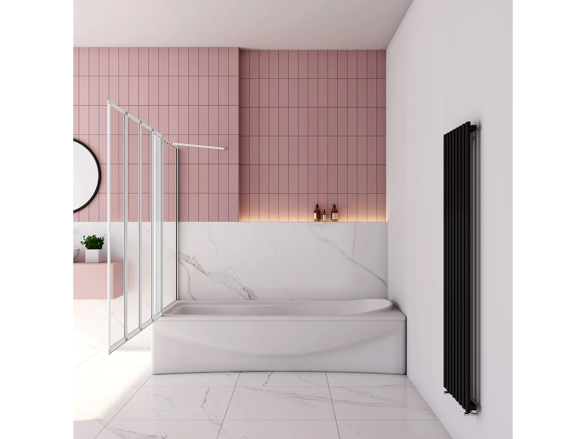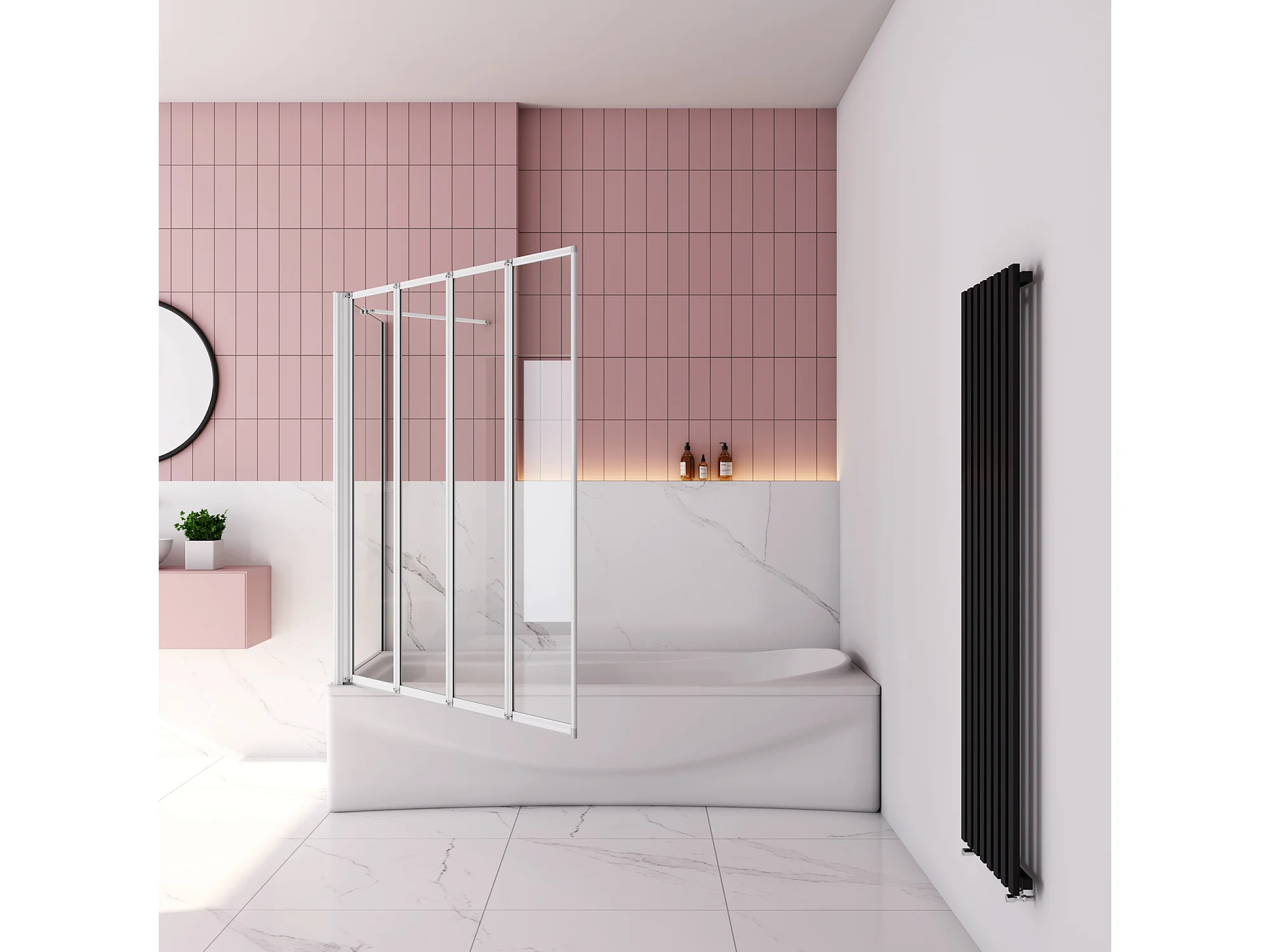 120x80x140cm Badwand 4 panelen vouwbaar met vast zijwand,4mm helder ESG-veiligheidsglas,profiel van mat grijs