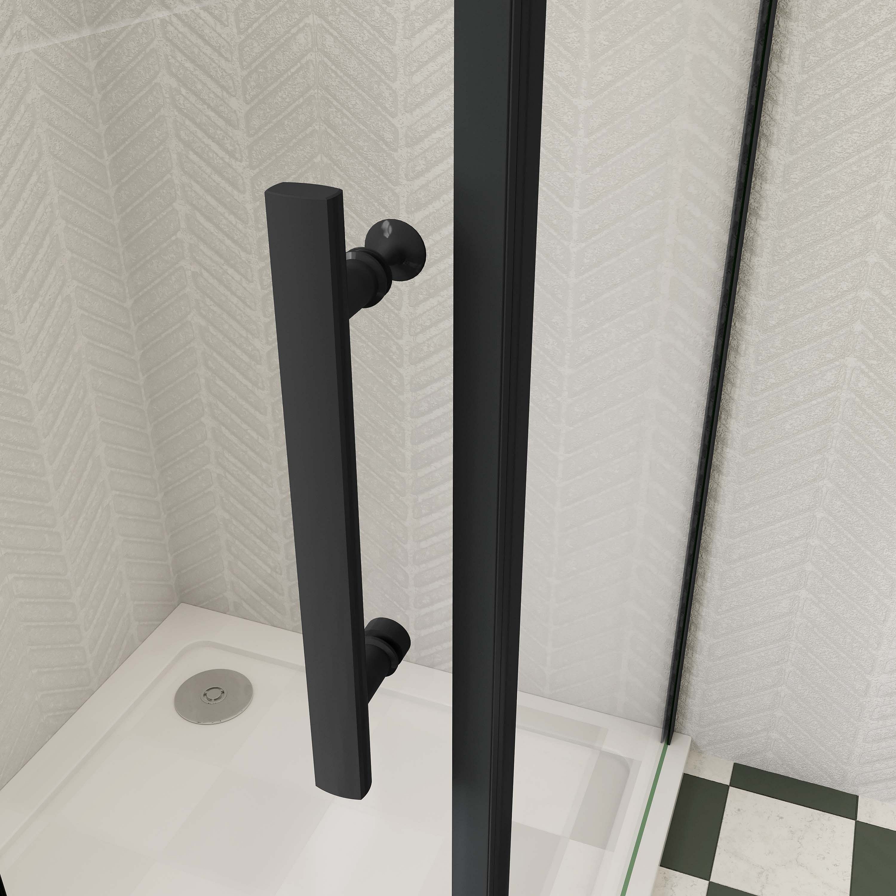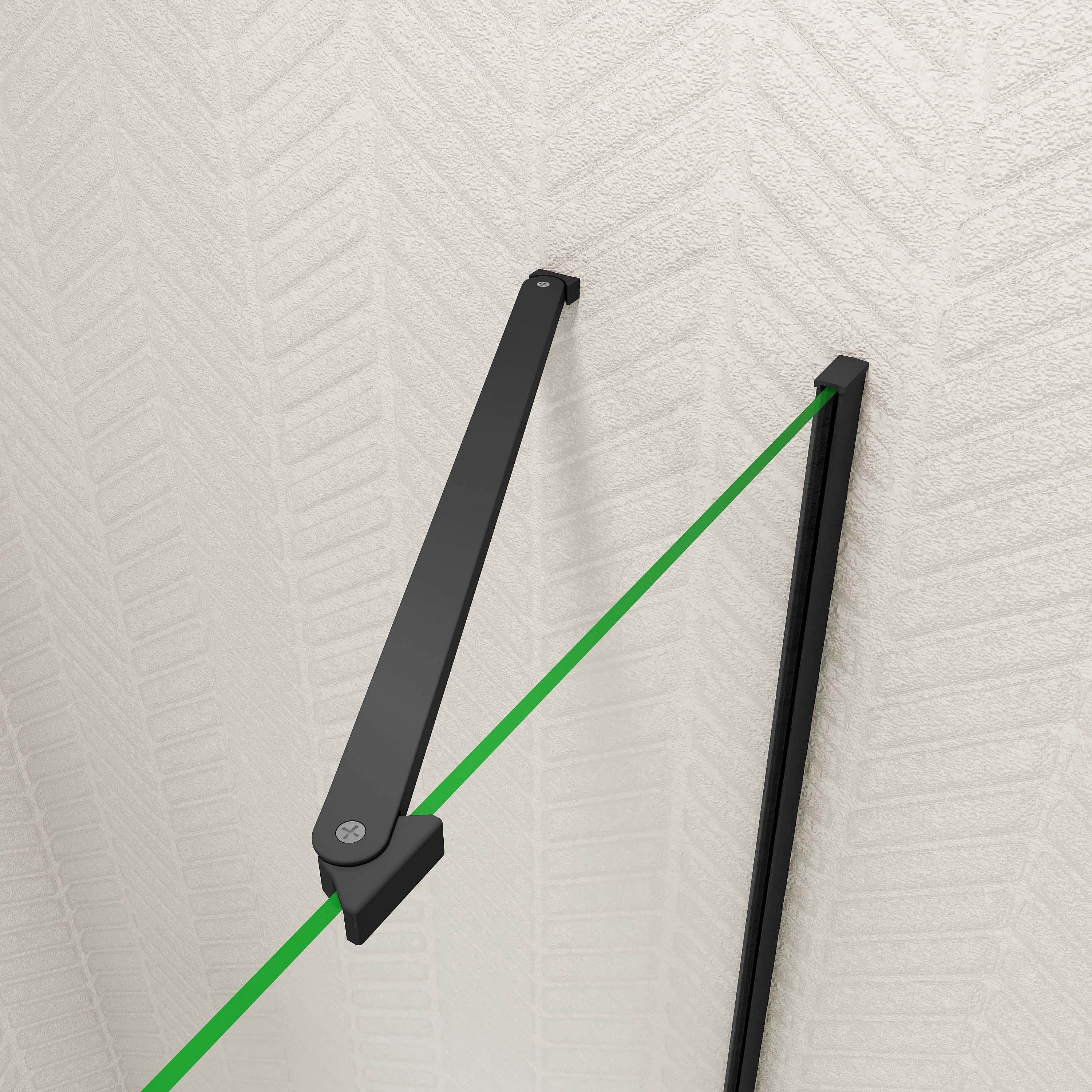 120x90x195cm douchecabine met inklapbare vouwdeur en vaste zijwand, 6mm helder EasyClean veiligheidsglas,mat zwarte aluminium frame, stabilisatiestang 50 cm