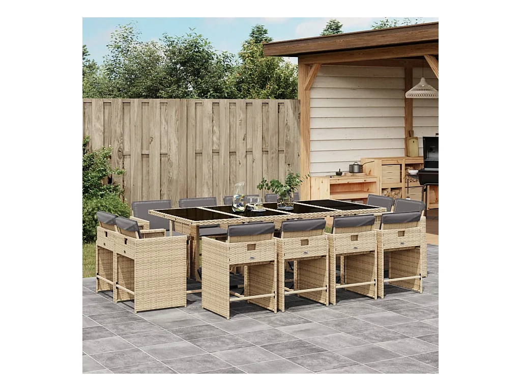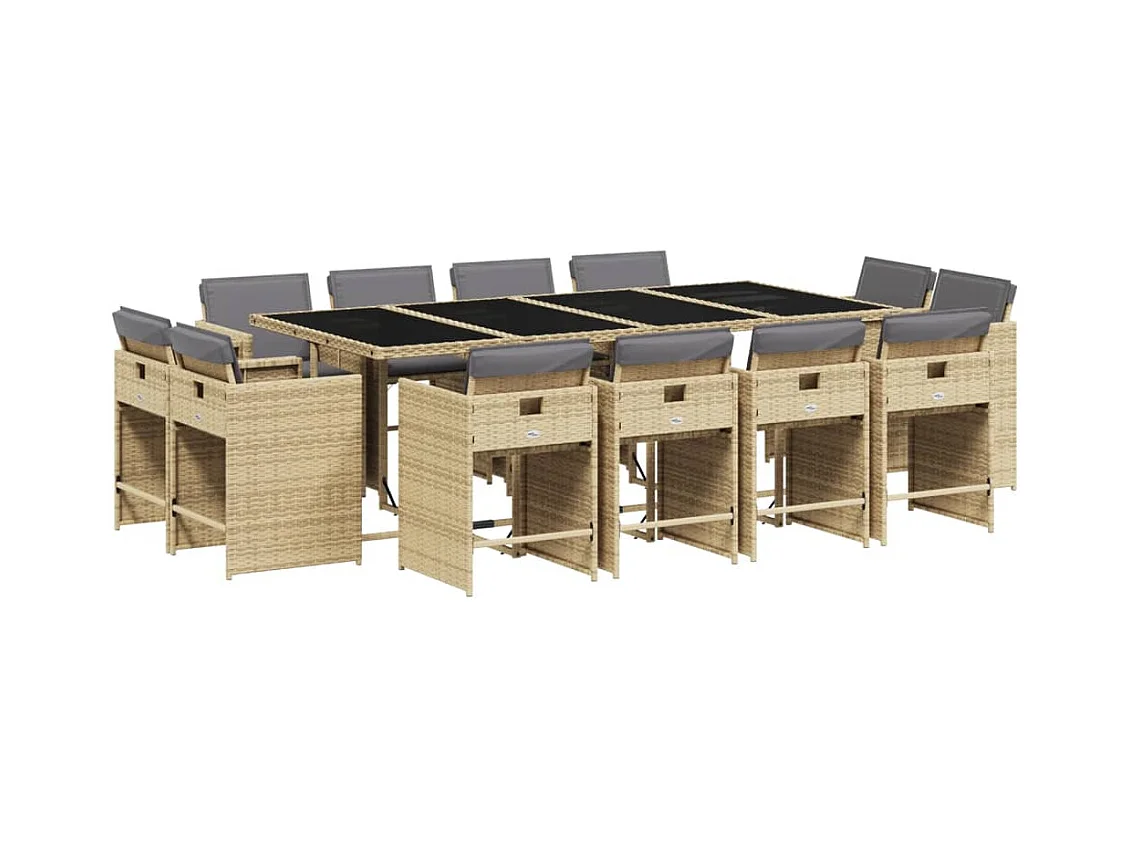 13-delige Tuinset met kussens poly rattan gemengd beige
