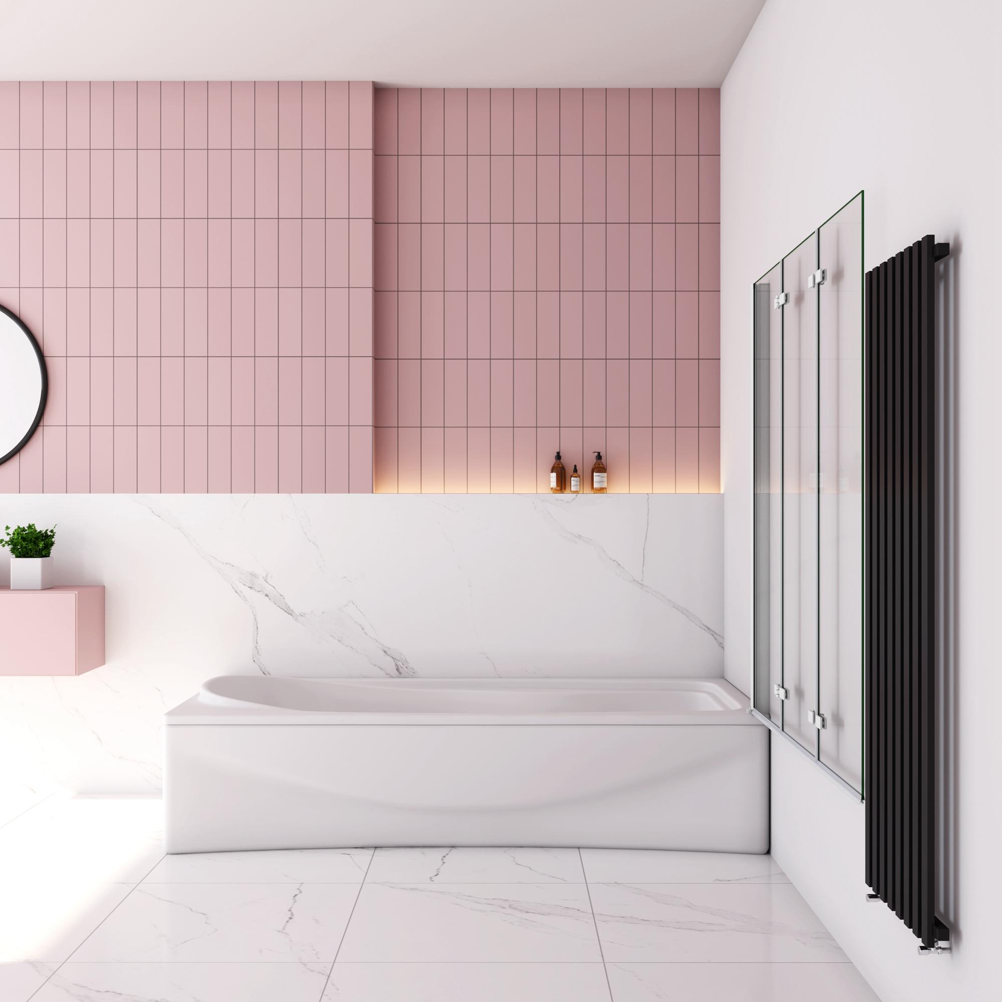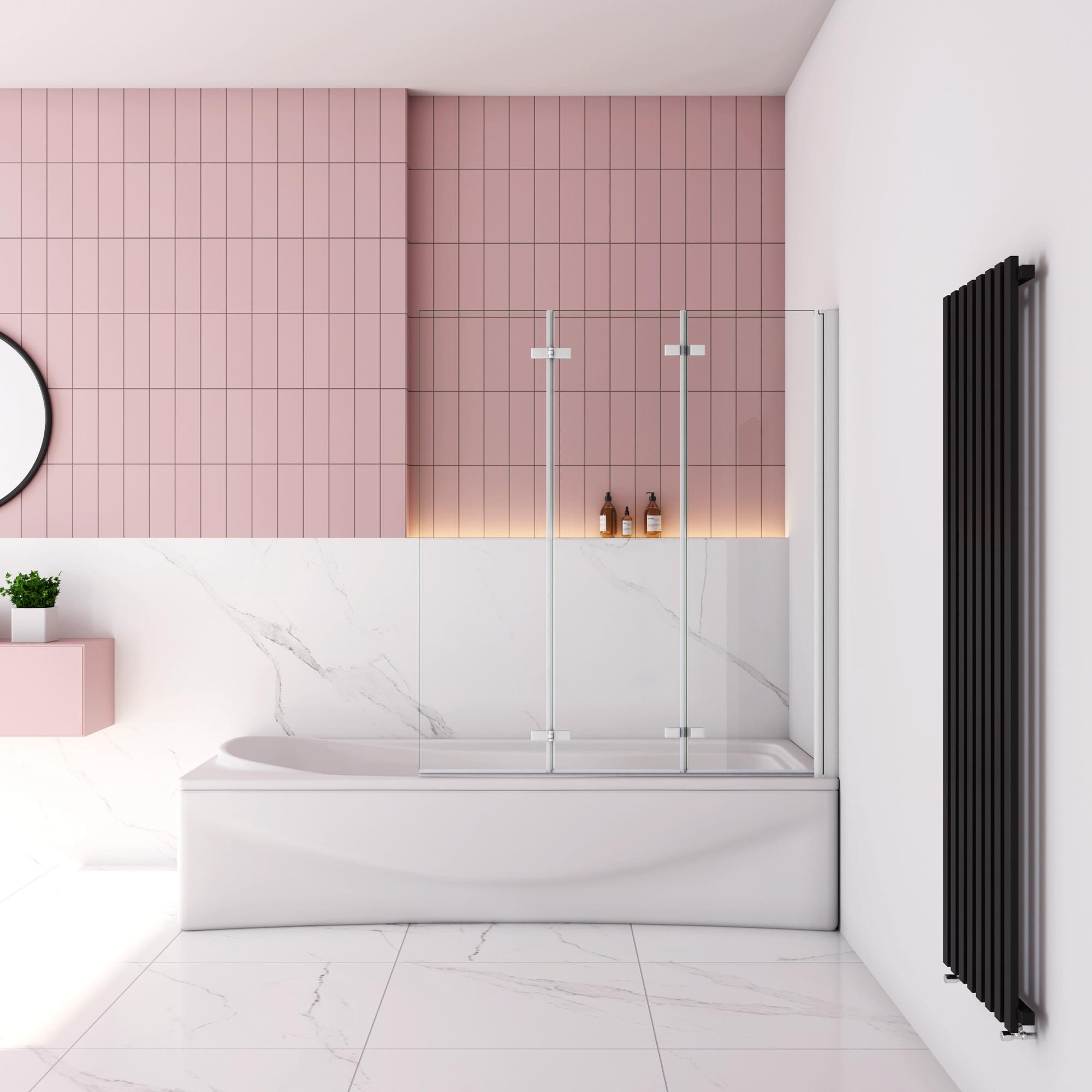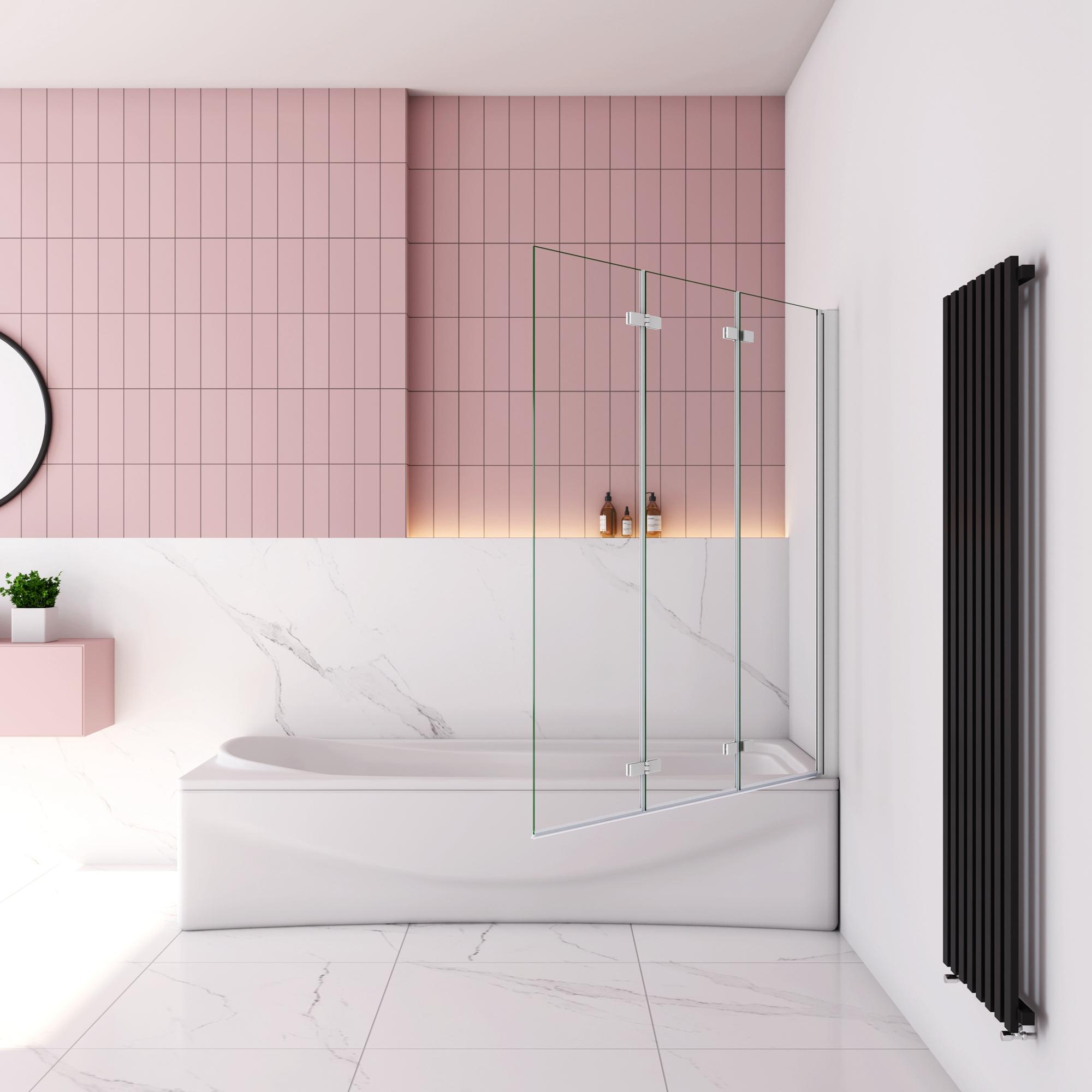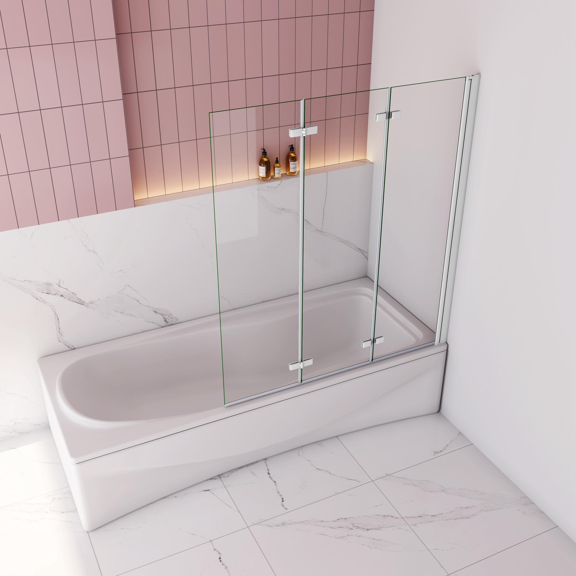 130x140cm Badscherm badwand 3 panelen vouwbaar,6mm NANO helder ESG-veiligheidsglas - mat wit profiel