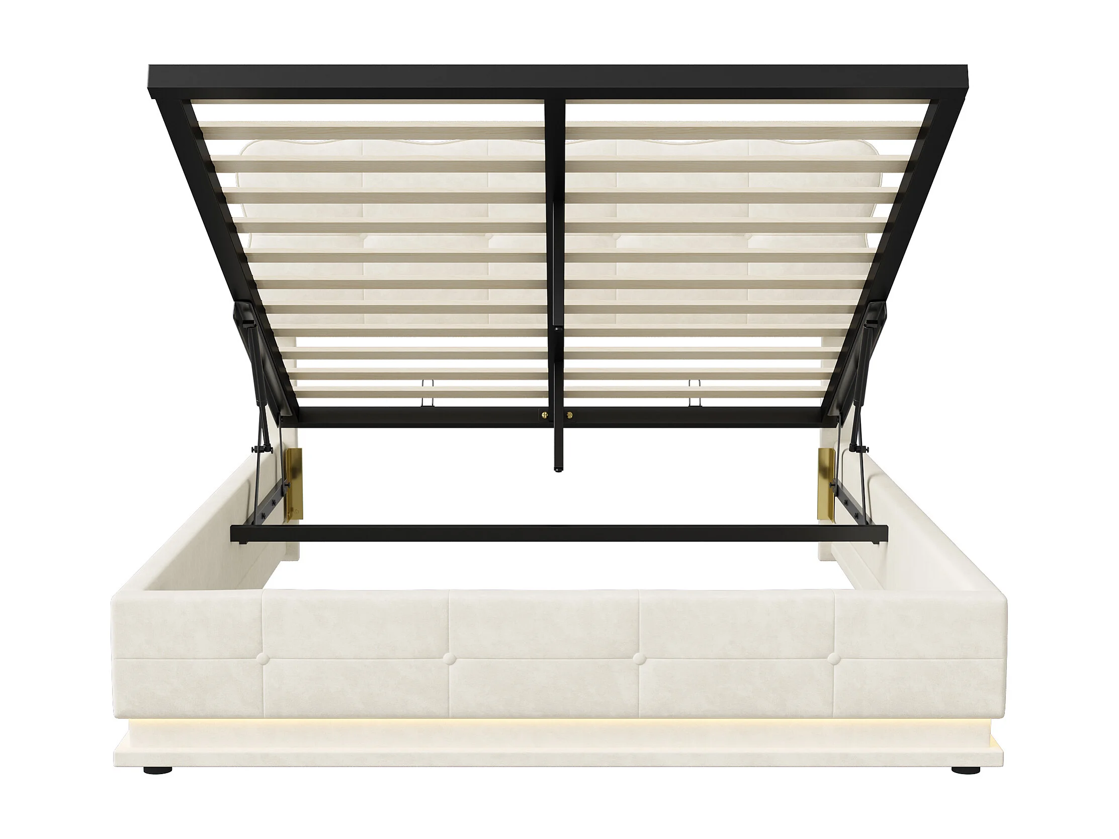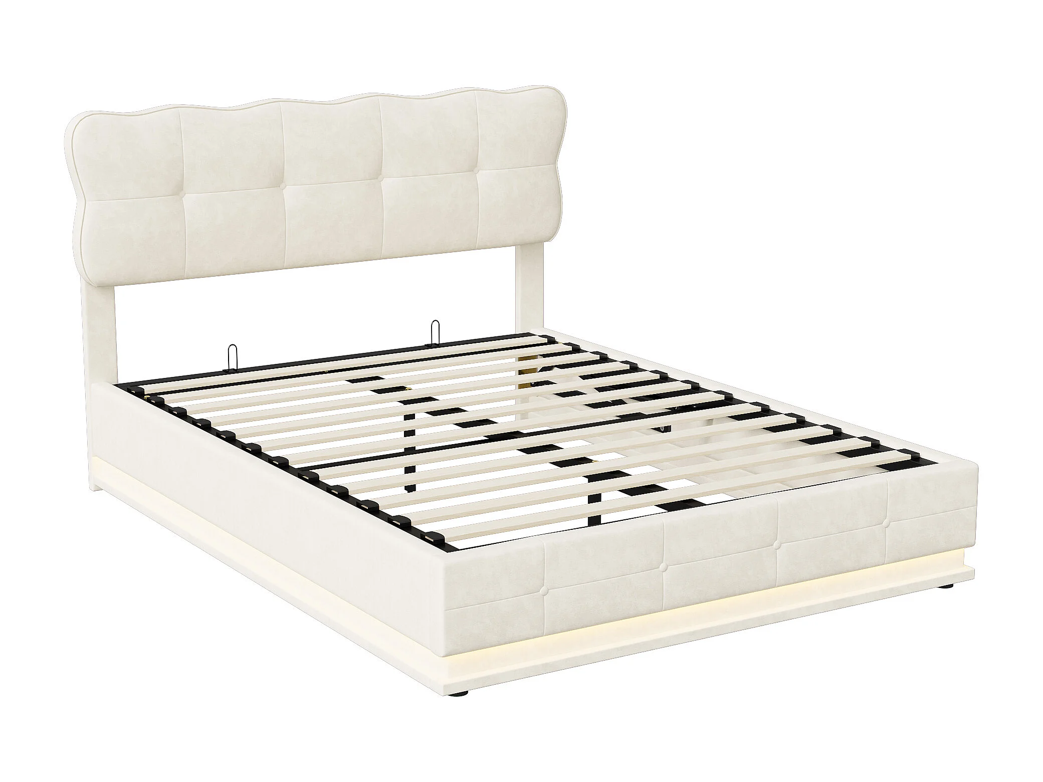 140x200 Bed met opbergruimte in de basis, tweepersoonsbed met verstelbare ledverlichting, lattenbodem, fluweel, beige