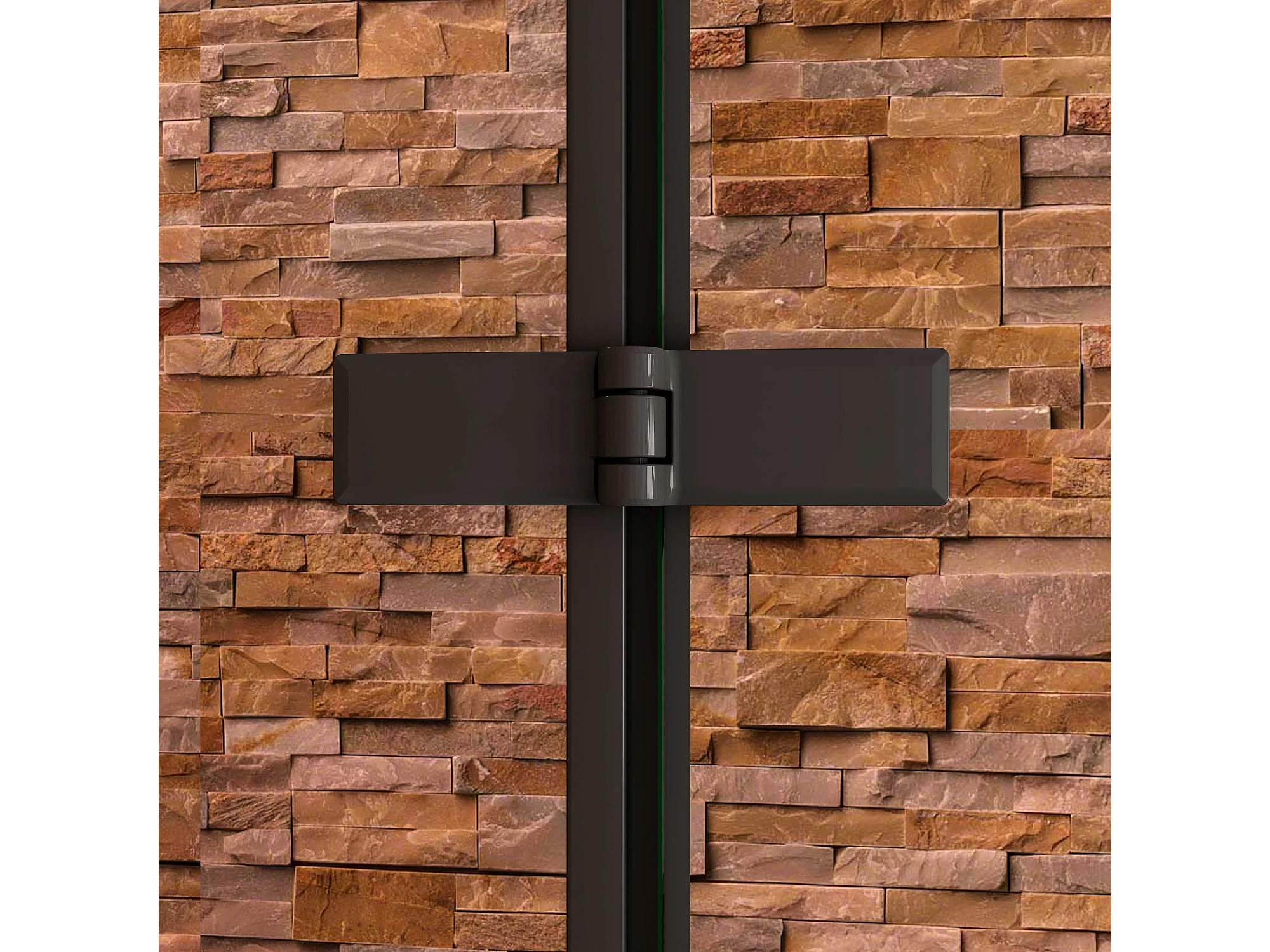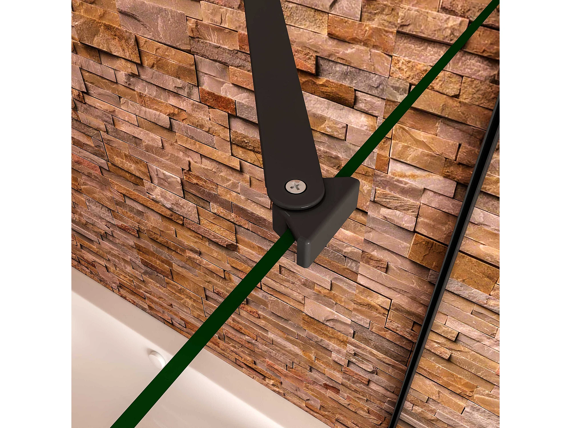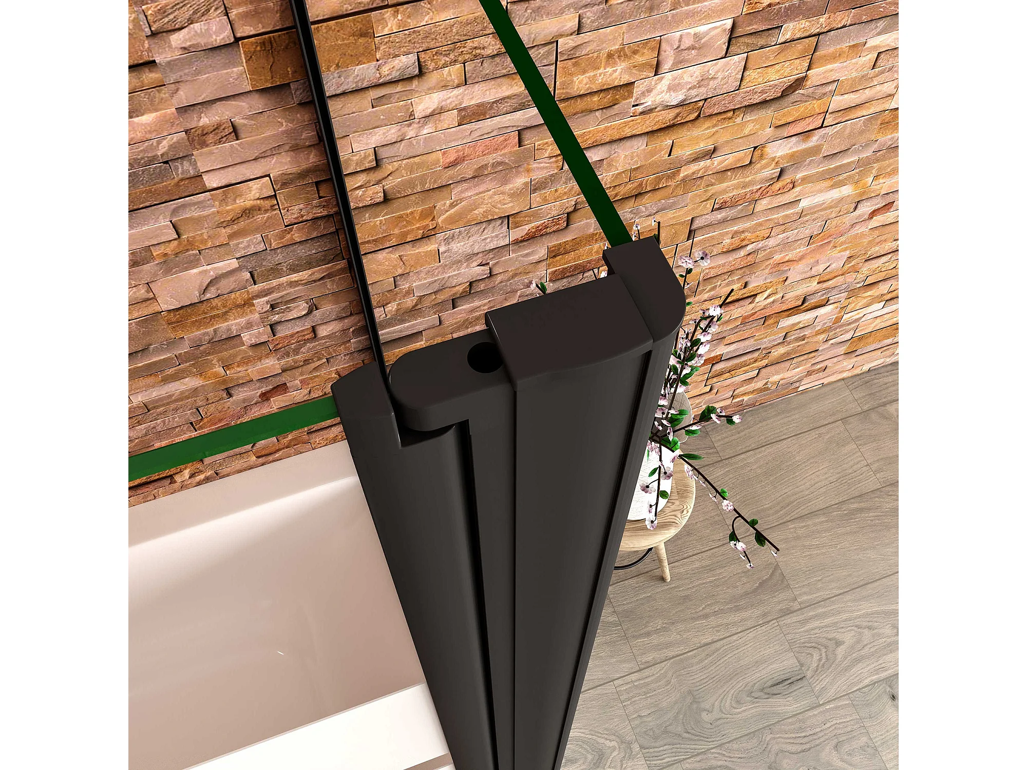 140x70x140cm Badwand 3 panelen vouwbaar met vast zijwand,6 mm nano helder veiligheidsglas met horizontale strepen - mat zwart profiel