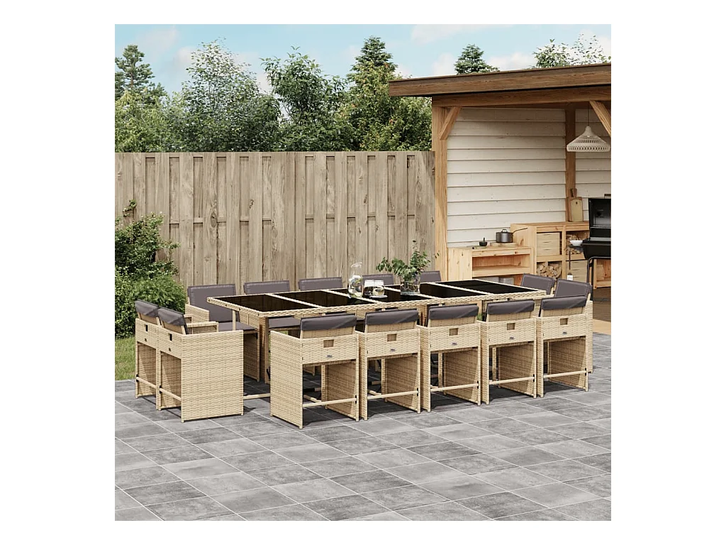 15-delige Tuinset met kussens poly rattan gemengd beige