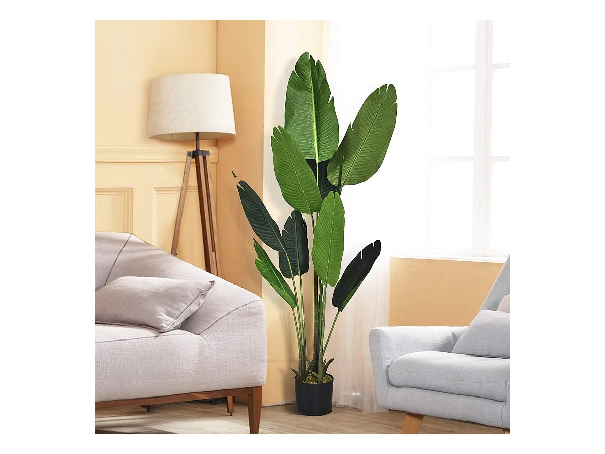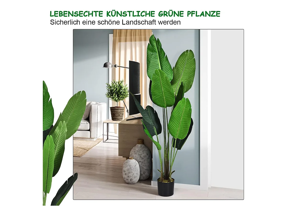 2-delige kunstbananenboom, met pot en kunstmos, kunststof, groen (17x17x120 cm)