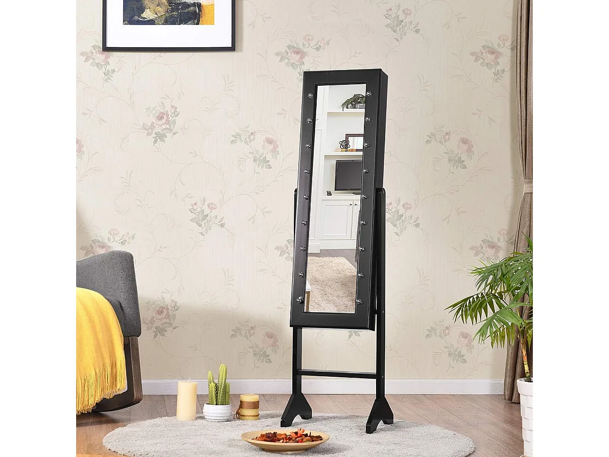 Sieradenkast met spiegel, sieradenspiegelkast met lade, op wieltjes, afsluitbaar, vrijstaand, 42 x 38 x 157 cm (zwart)VH32443