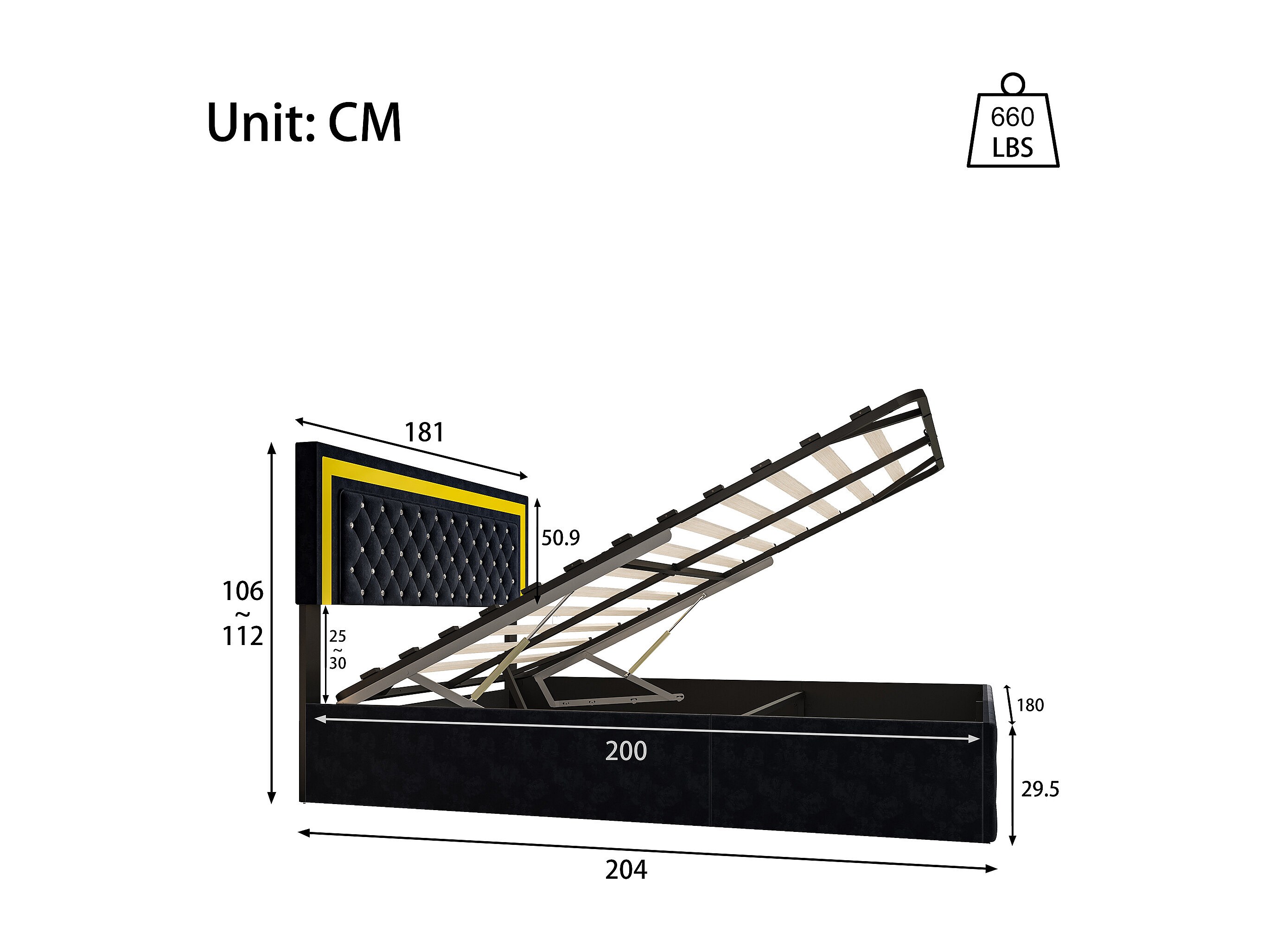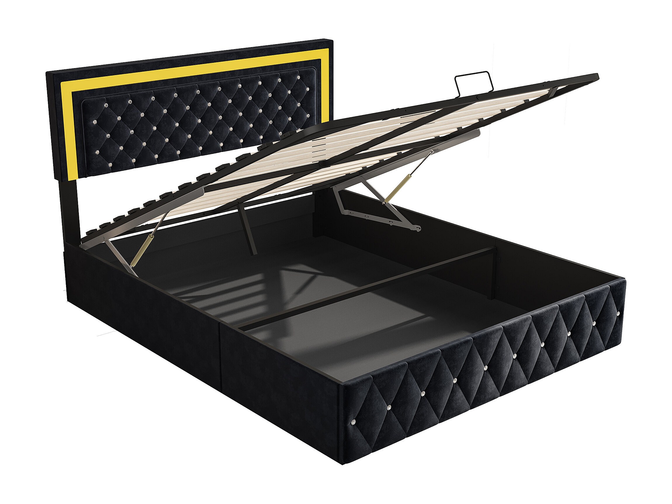 180x200 cm fluwelen opbergbed - met LED en lattenbodem - Tweepersoonsbed met opbergruimte - Zwart