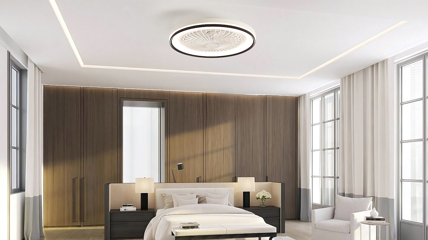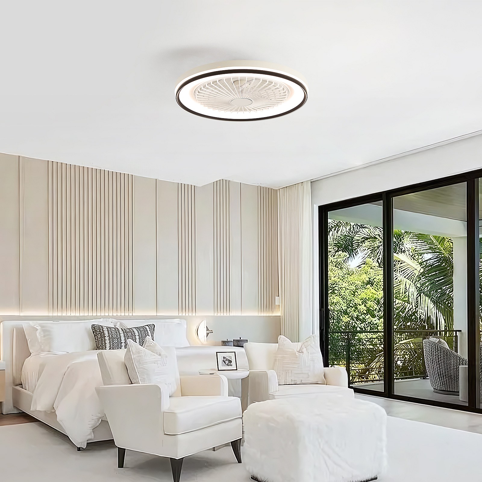 19 inch plafondventilator met afstandsbediening, 3 ABS-bladen, ultrastille DC-motor, 3-kleurige RGB dimbare LED (48,26 x 48,26 x 12,7 cm)
