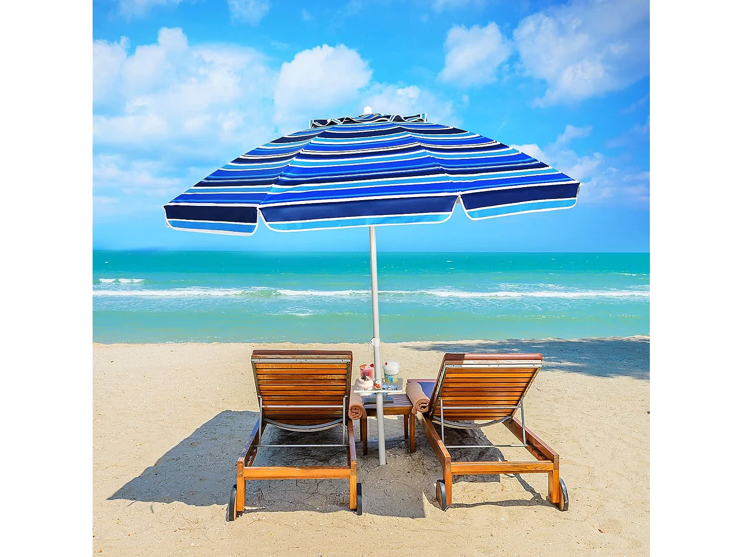 2,2m strandparasol strandparaplu met draagtas, UPF50 + zon bescherming zonnescherm,strand zonnescherm met zand anker,draagbare zonnescherm (Marineblauw)ZB34461
