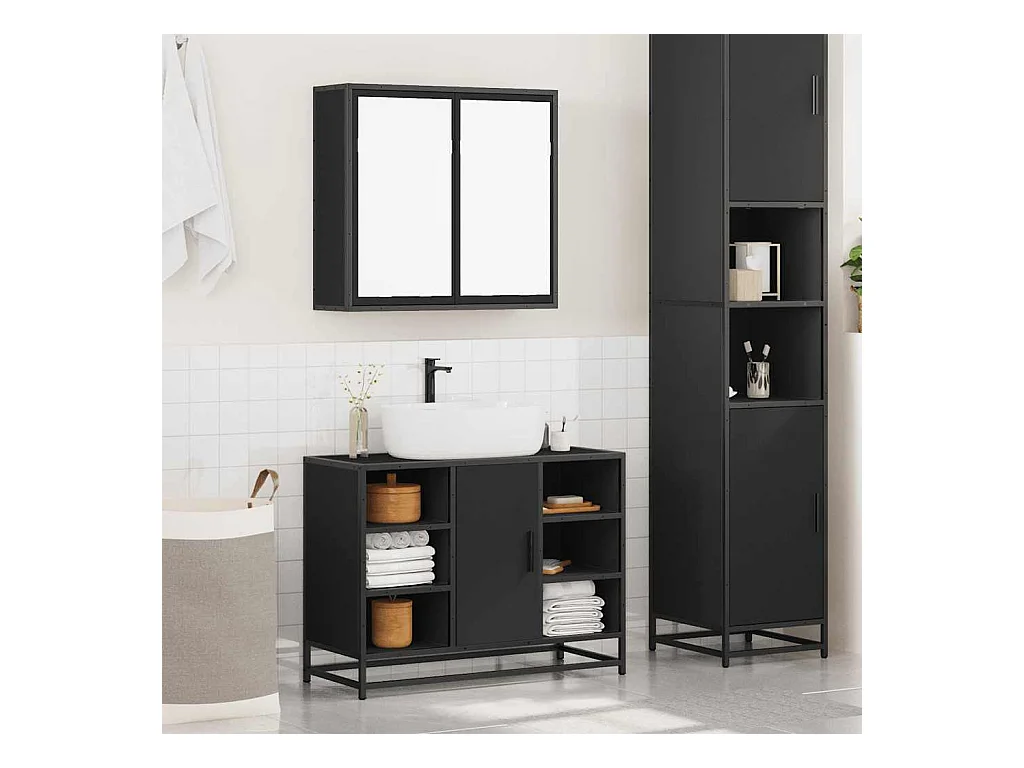 Badkamermeubelset Wandmontage 3-delig Zwart Eiken
