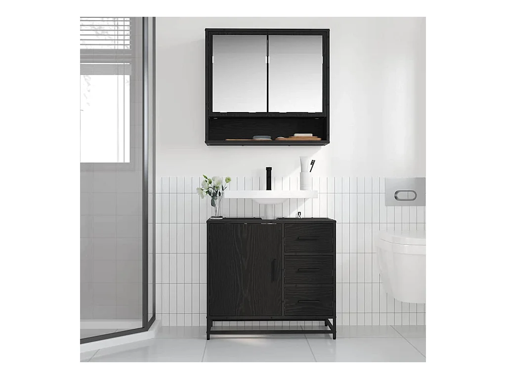 Zwarte eiken badkamermeubel 65 x 33 x 60 cm
