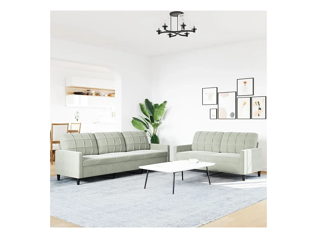 2-delige bankstel met kussens Lichtgrijs fluweel