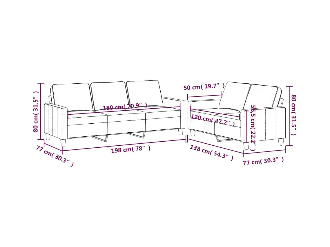Salontafel set van 2 in 1 fi70/fi60 Kasjmier, frame in Kasjmier