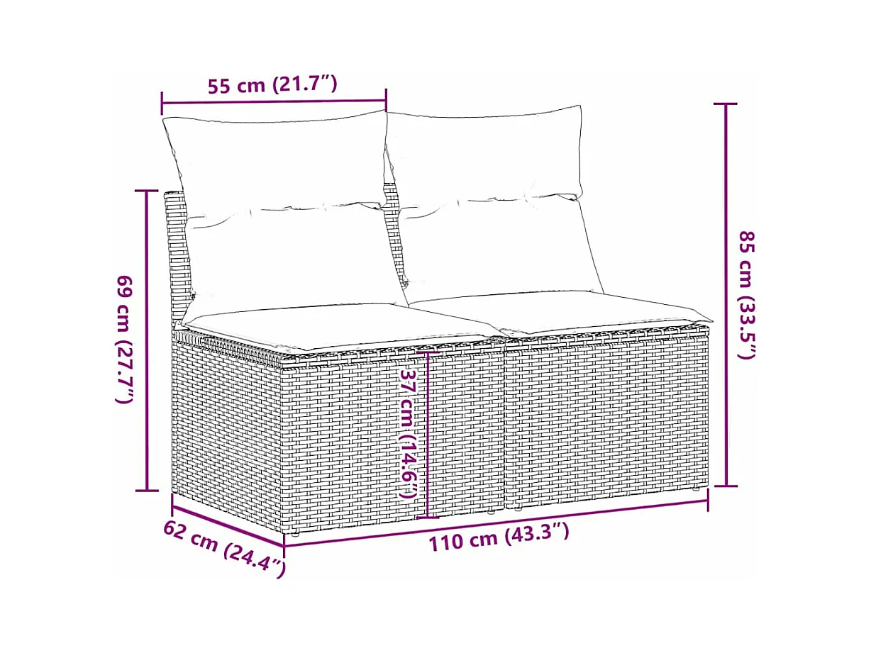 2-delige Loungeset met kussens poly rattan acacia bruin