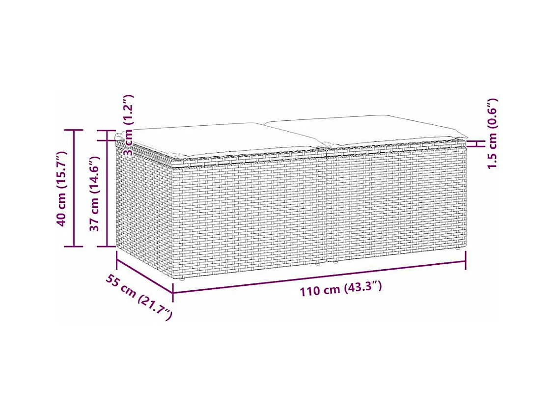 2-delige Loungeset met kussens poly rattan acacia bruin
