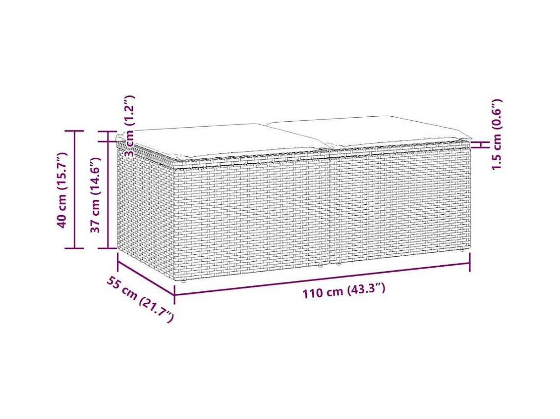 2-delige Loungeset met kussens poly rattan acacia zwart