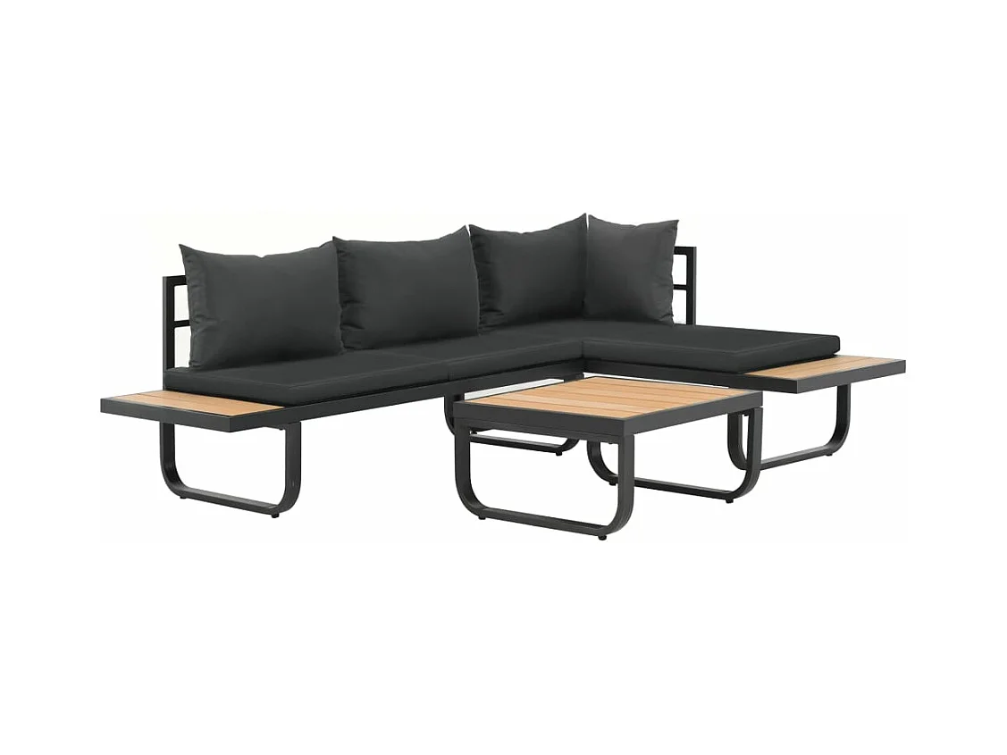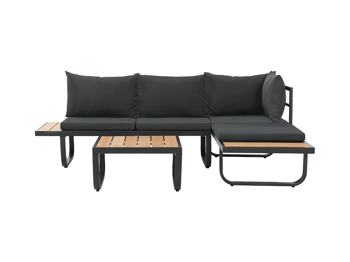 Tuinhoekbank met kussens geweven stof antracietkleurig
