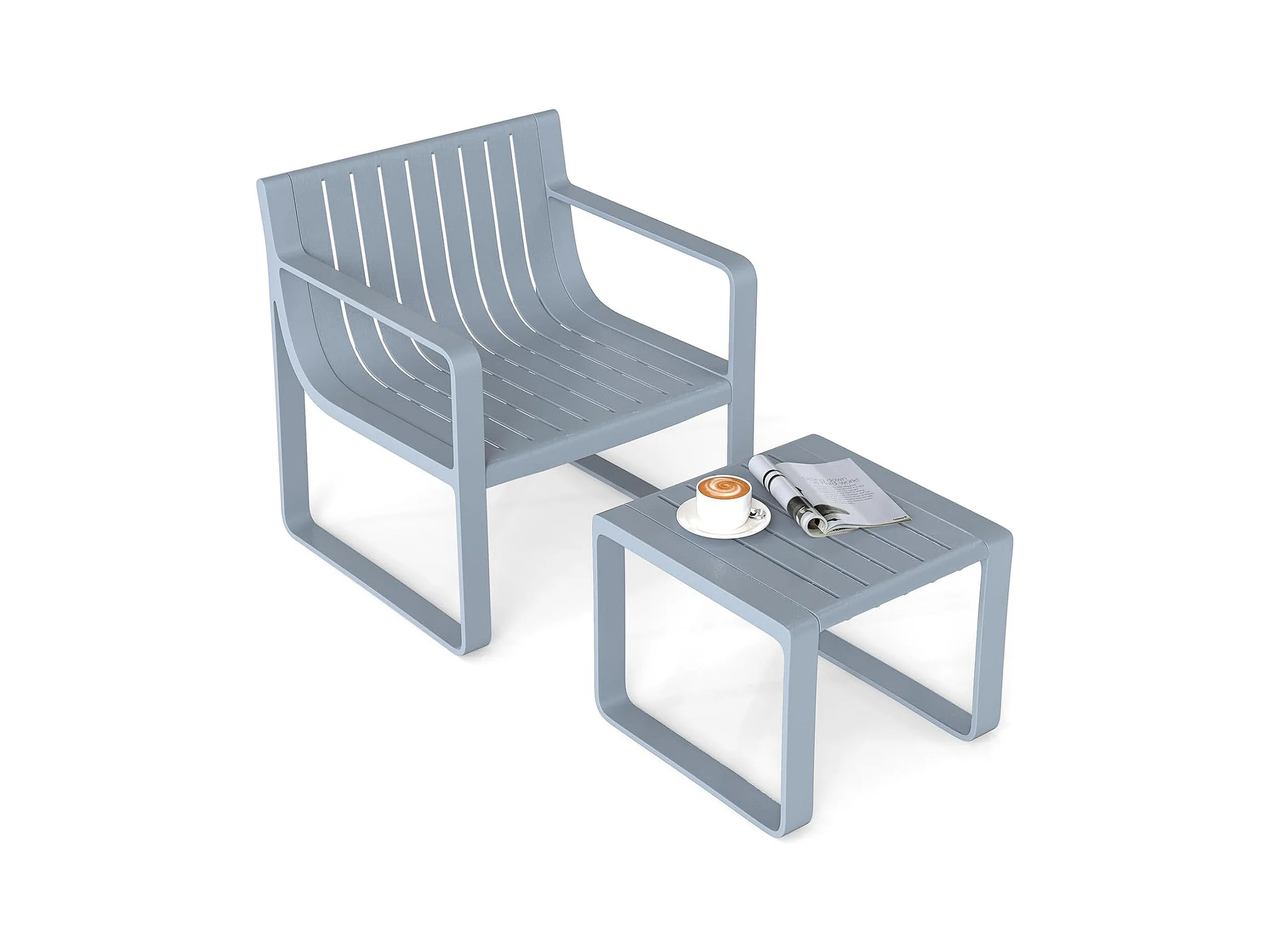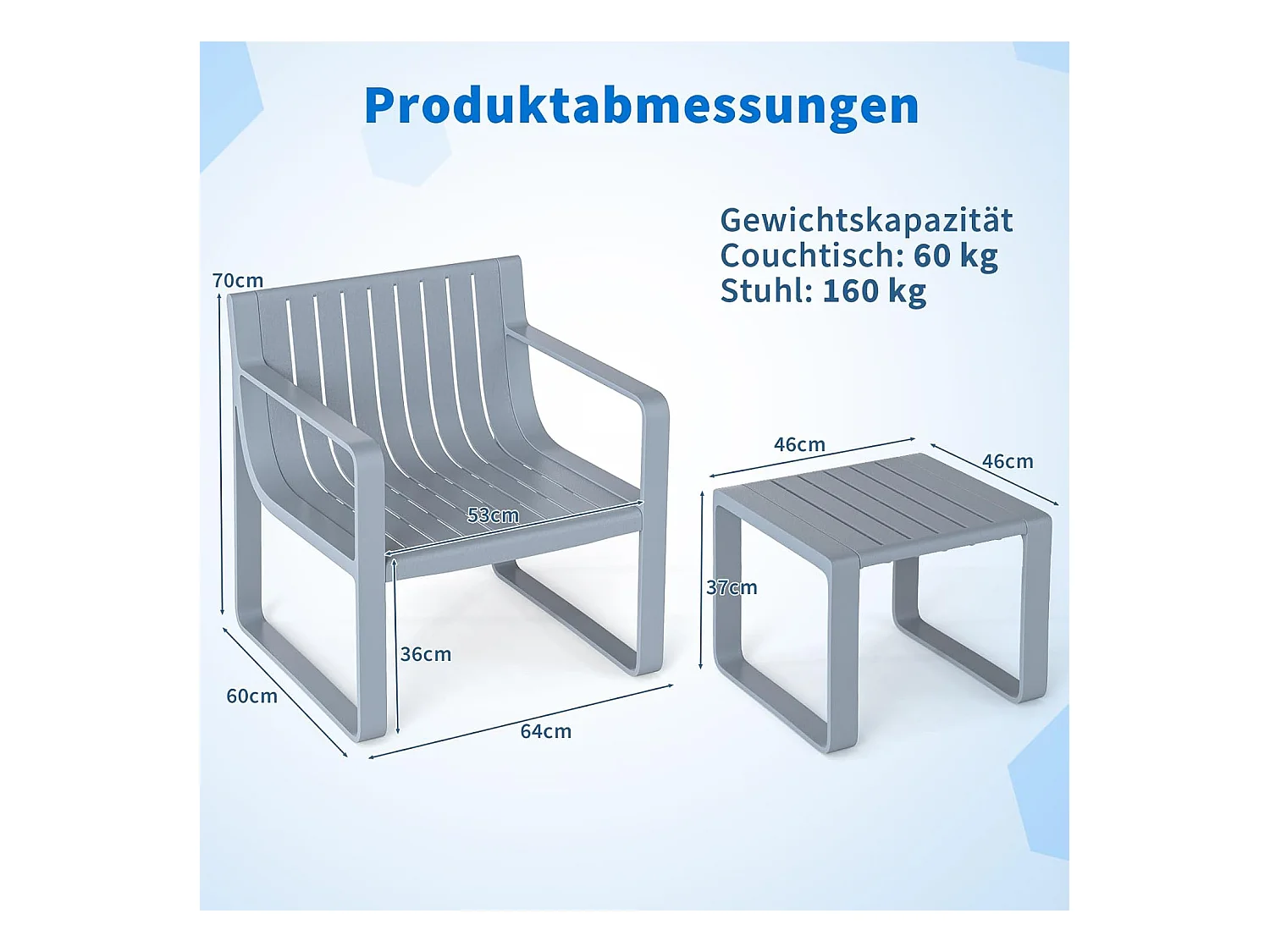 2-delige tuinmeubelset, weerbestendige balkonset van PP, balkonmeubelset, tuinstoel met tafel, terrasmeubels, tuinset, zitgroep grijs ZB33173