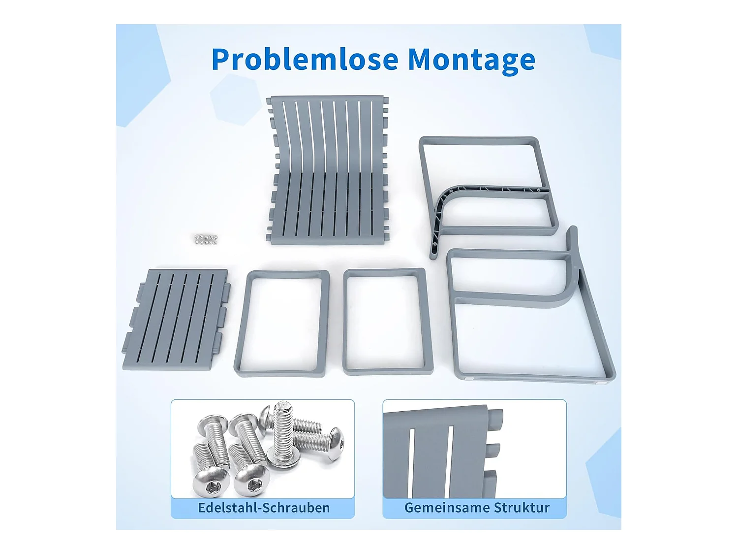 Set van 5 stapelbare bloempotten, kunststof, weerbestendig, grijs (59x21x16 cm)