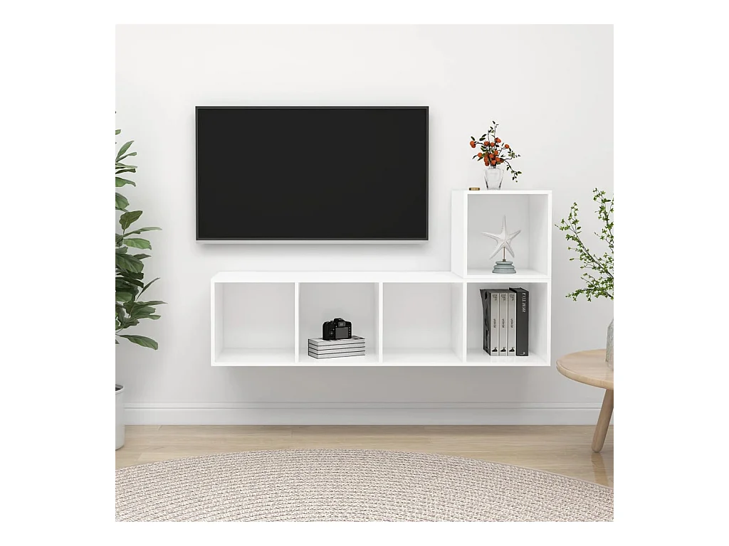 4-delige Tv-meubelset | Tv-Bank | TV-kast spaanplaat wit