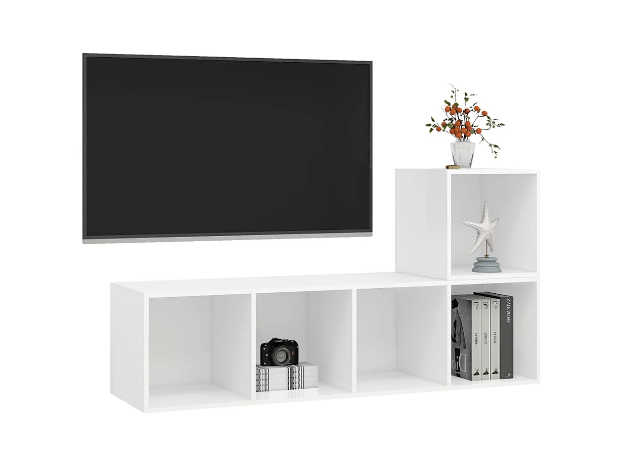 2-delige Tv-meubelset | Tv-Bank | TV-kast spaanplaat wit