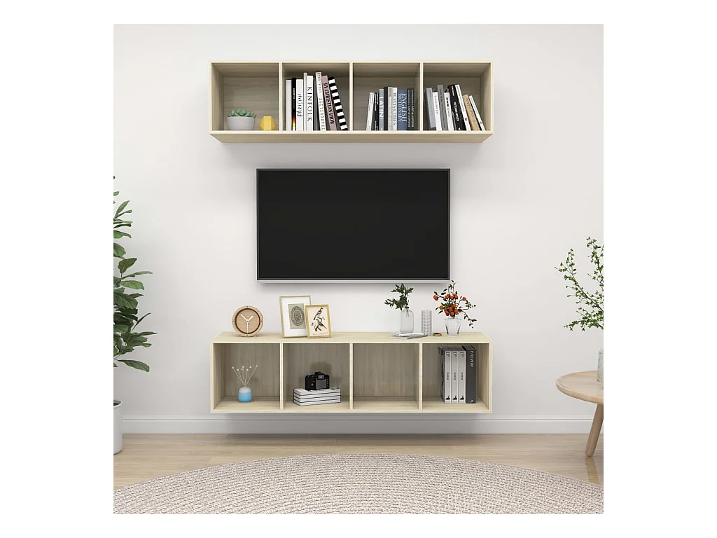 2-delige wandgemonteerde tv-kasten Sonoma Eiken Technisch hout