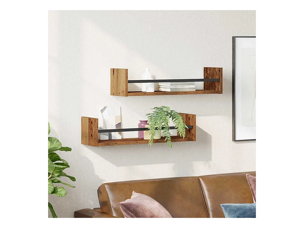 2-delige wandplanken Antiek hout 60x16x14 cm Gereconstrueerd hout
