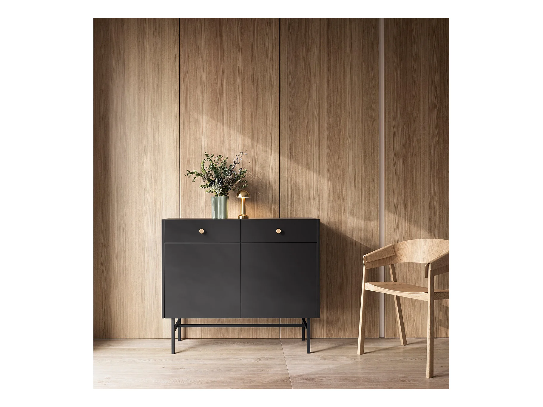 2-deurs dressoir met zwarte poten - 84 cm - grafietzwart - OKTIO
