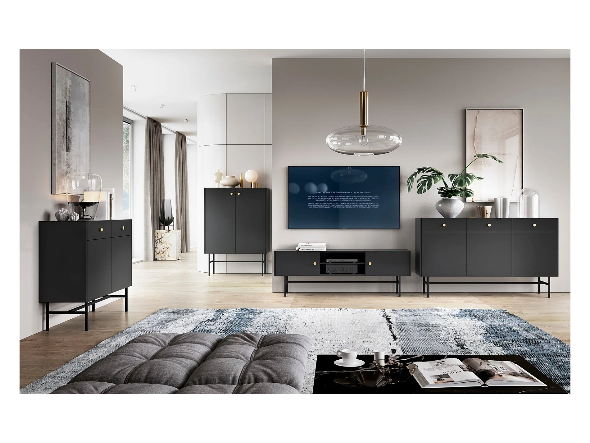3-deurs dressoir met gouden poten - 125 cm - grafietzwart - OKTIO